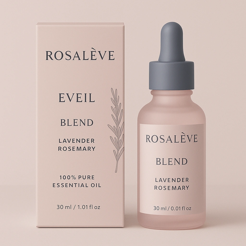 Developed ROSALÈVE luxury essential oils brand identity & packaging—leading concept, naming, typography, scalable architecture via AI-assisted, editorial design