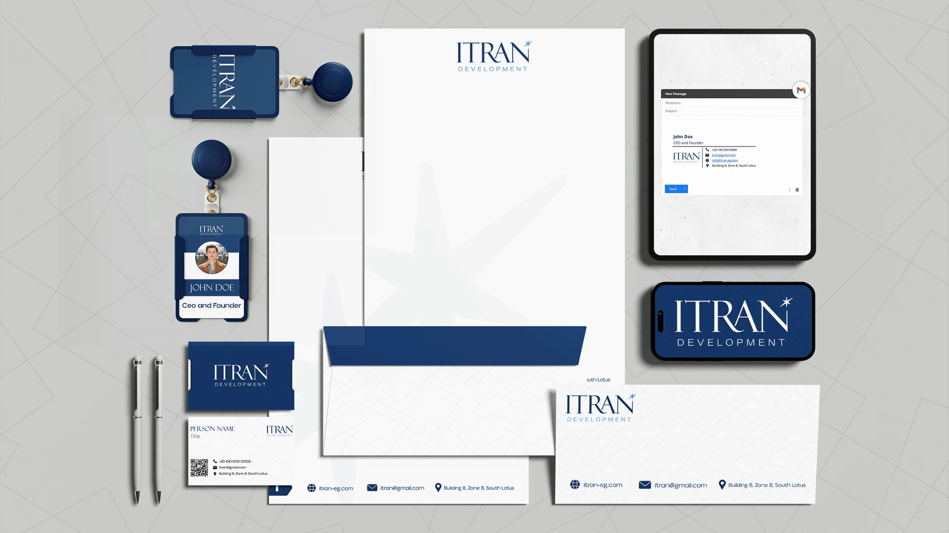 The final result is a cohesive brand identity system that positions ITRAN as a trusted, forward-looking real estate developer.