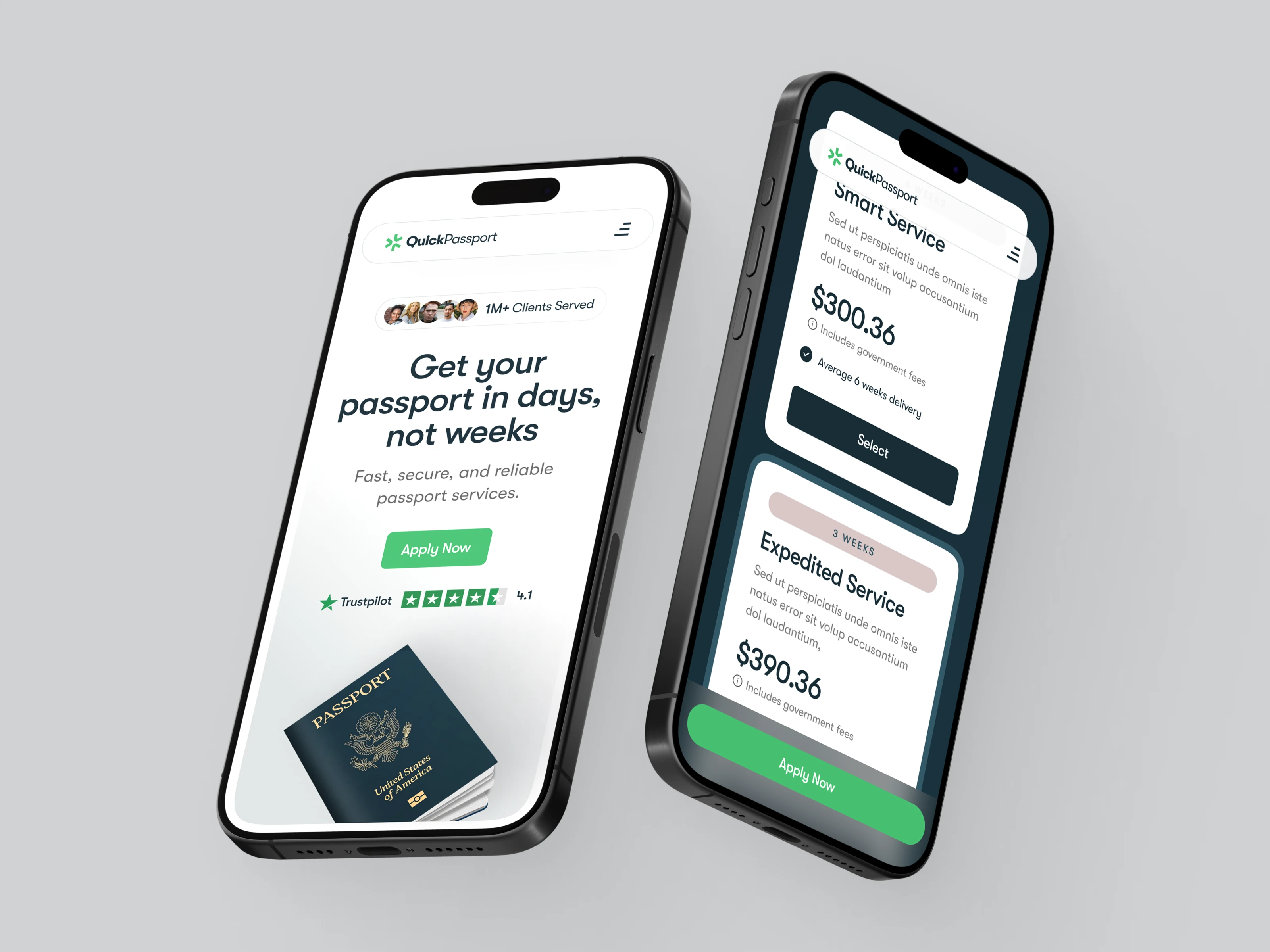 Responsive website for QuickPassport, designed for people looking to get a new U.S. passport or renew their old one. QuickPassport’s goal is to simplify the process and assist with any inquiries along the way.