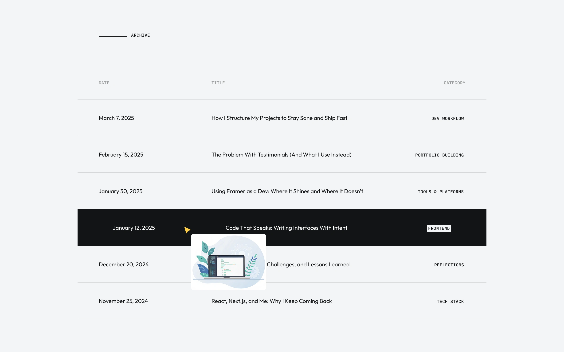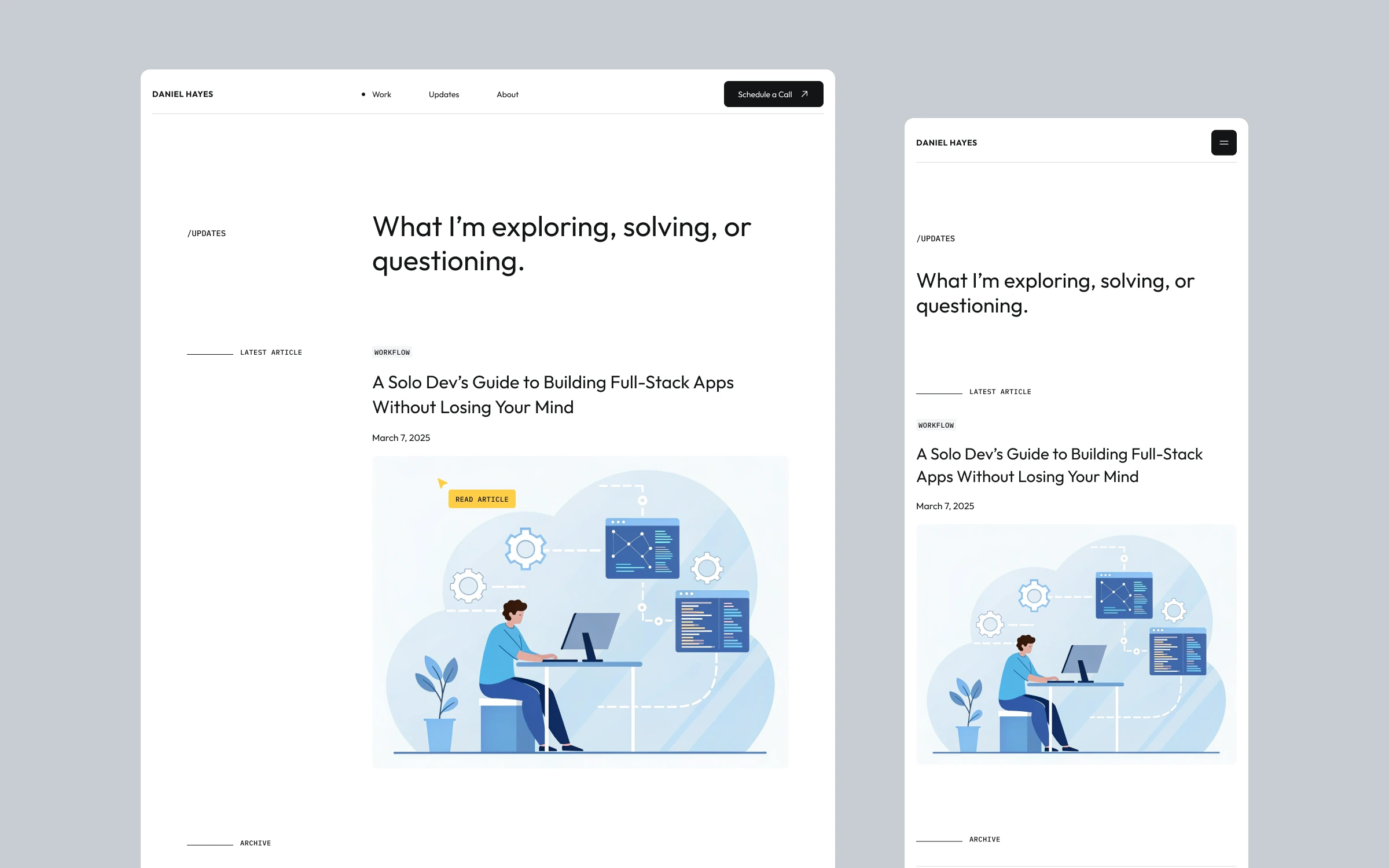 Most developer portfolios are either too minimal or too cluttered. I wanted to design one that feels professional but still approachable.