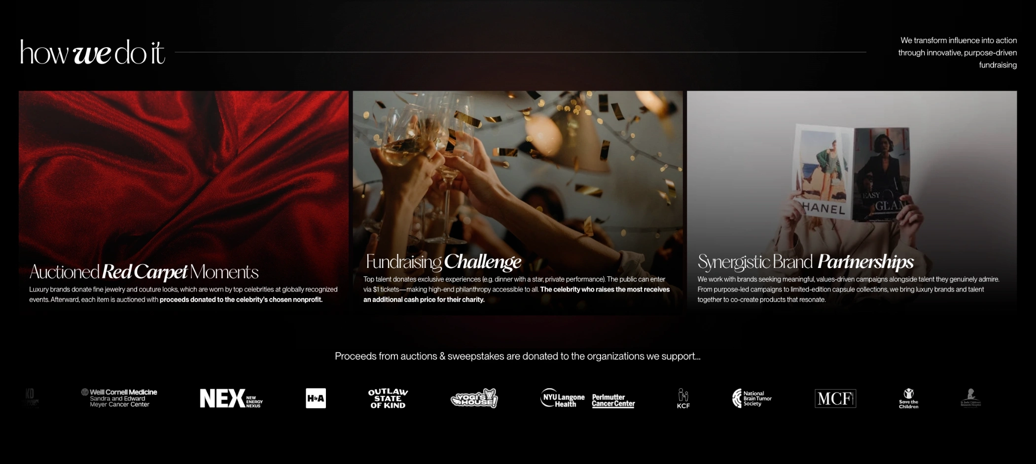 Full-service digital partnership for a luxury nonprofit blending celebrity influence with philanthropy through premium web design and consulting.