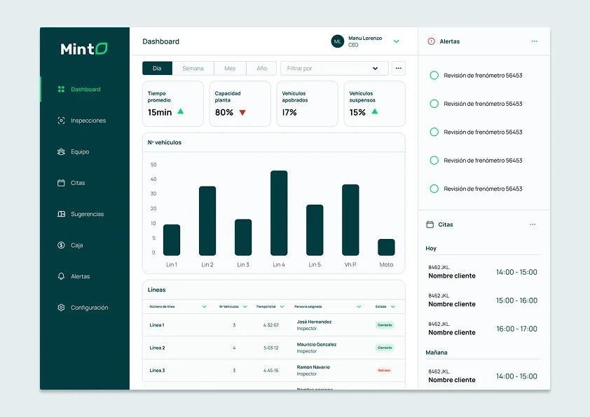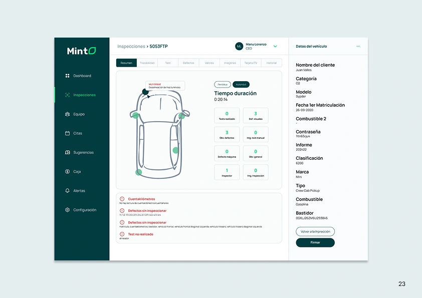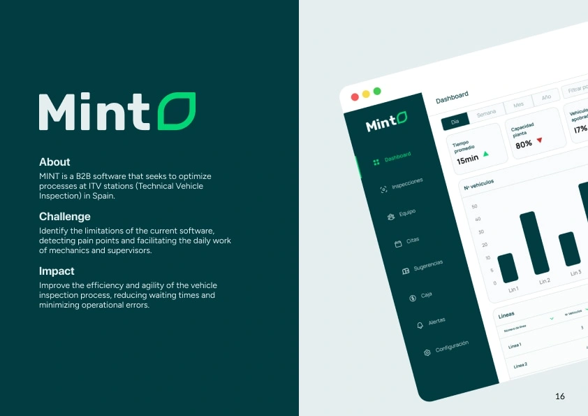 MINT is a B2B software that seeks to optimize processes at ITV stations (Technical Vehicle Inspection) in Spain.