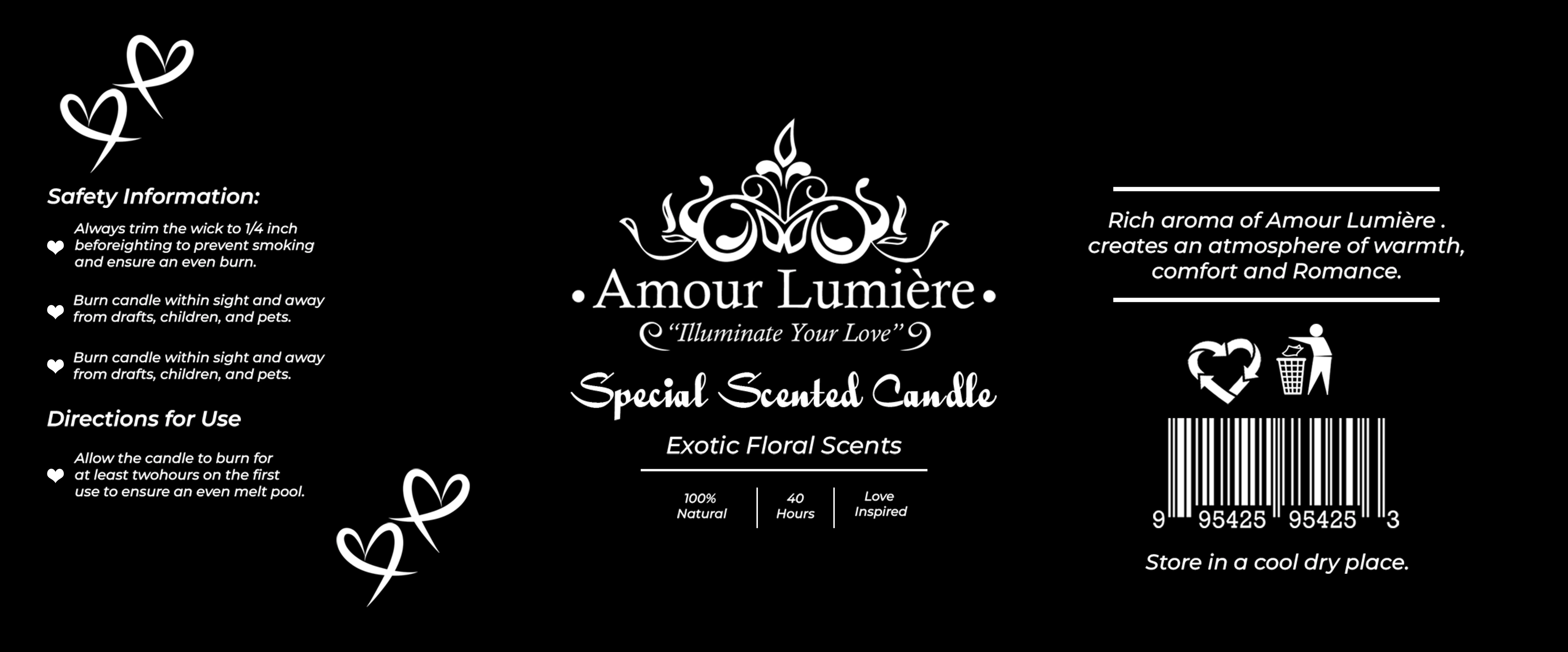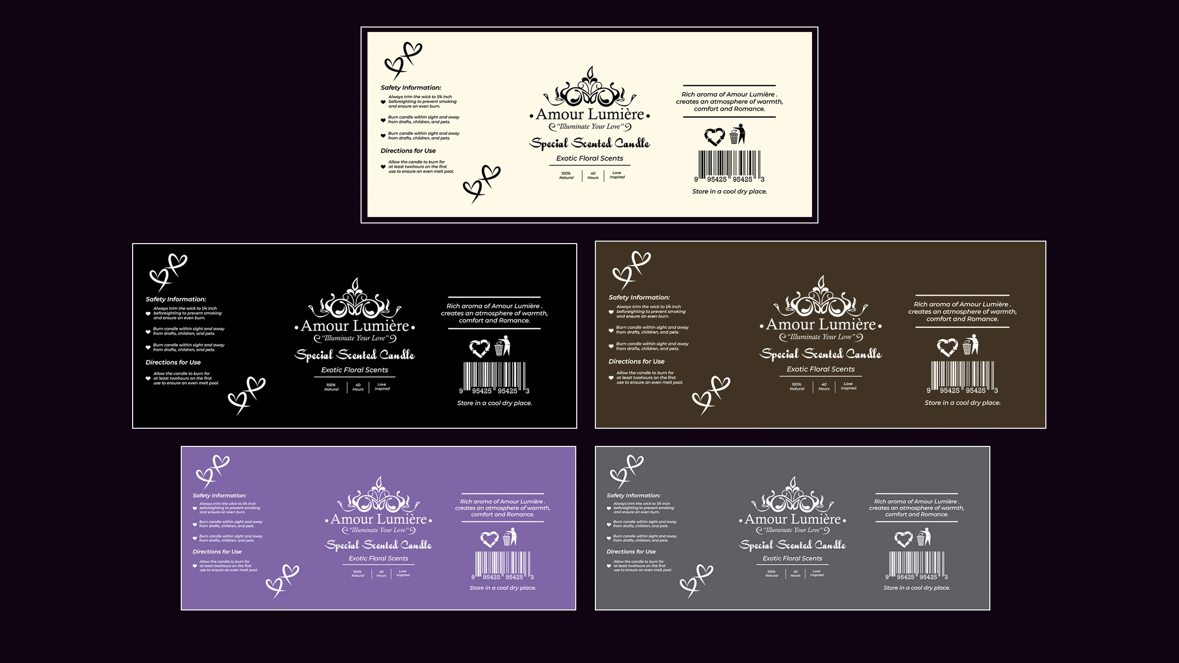 I was able to create a label solution for Amour Lumière. The label gave them a clear direction of the marketing strategy needed for their candles.