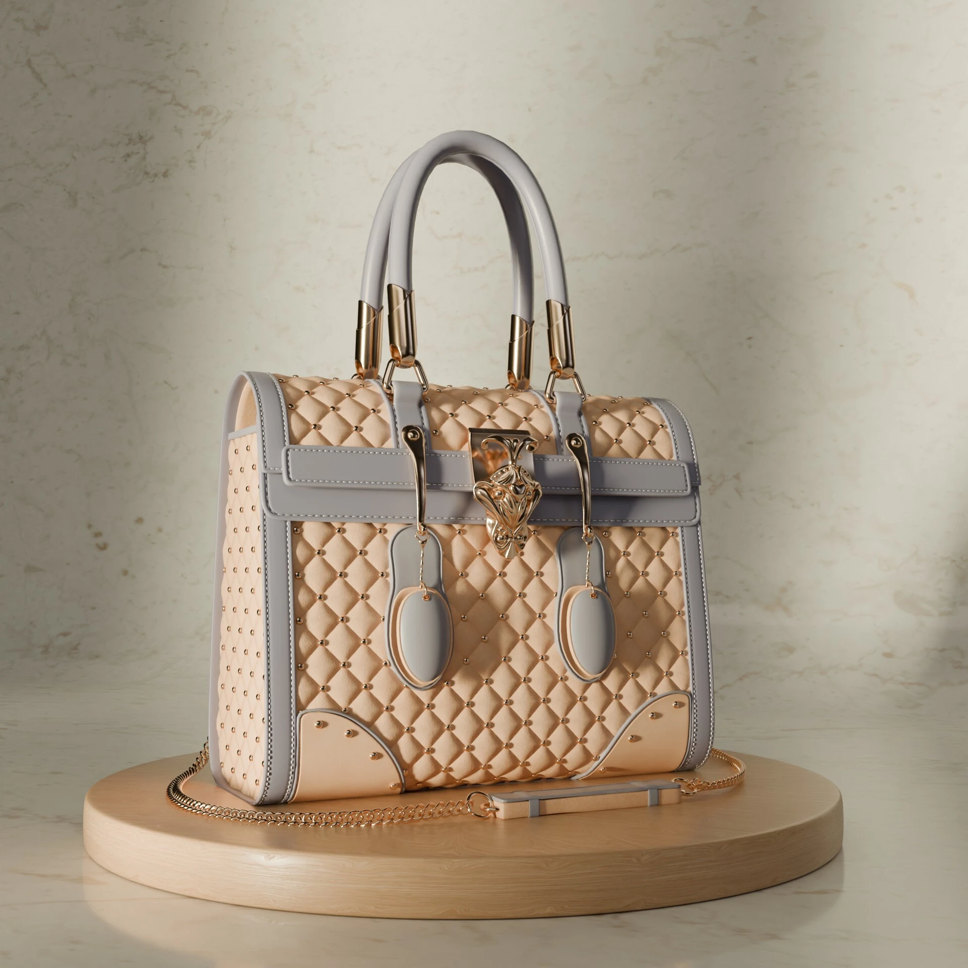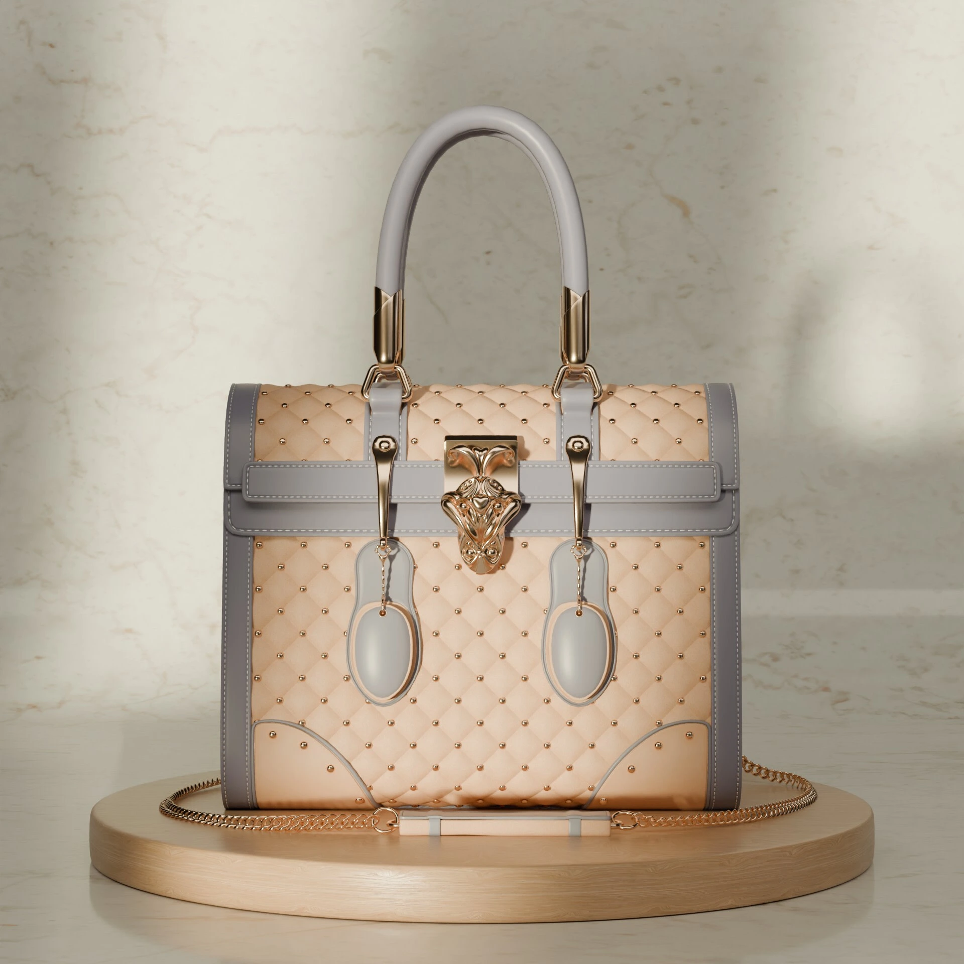 3D Product Render for a Luxury Handbag. Made following an AI generated concept. Modeled and Rendered in Blender, the latch Decoration piece done in Zbrush.