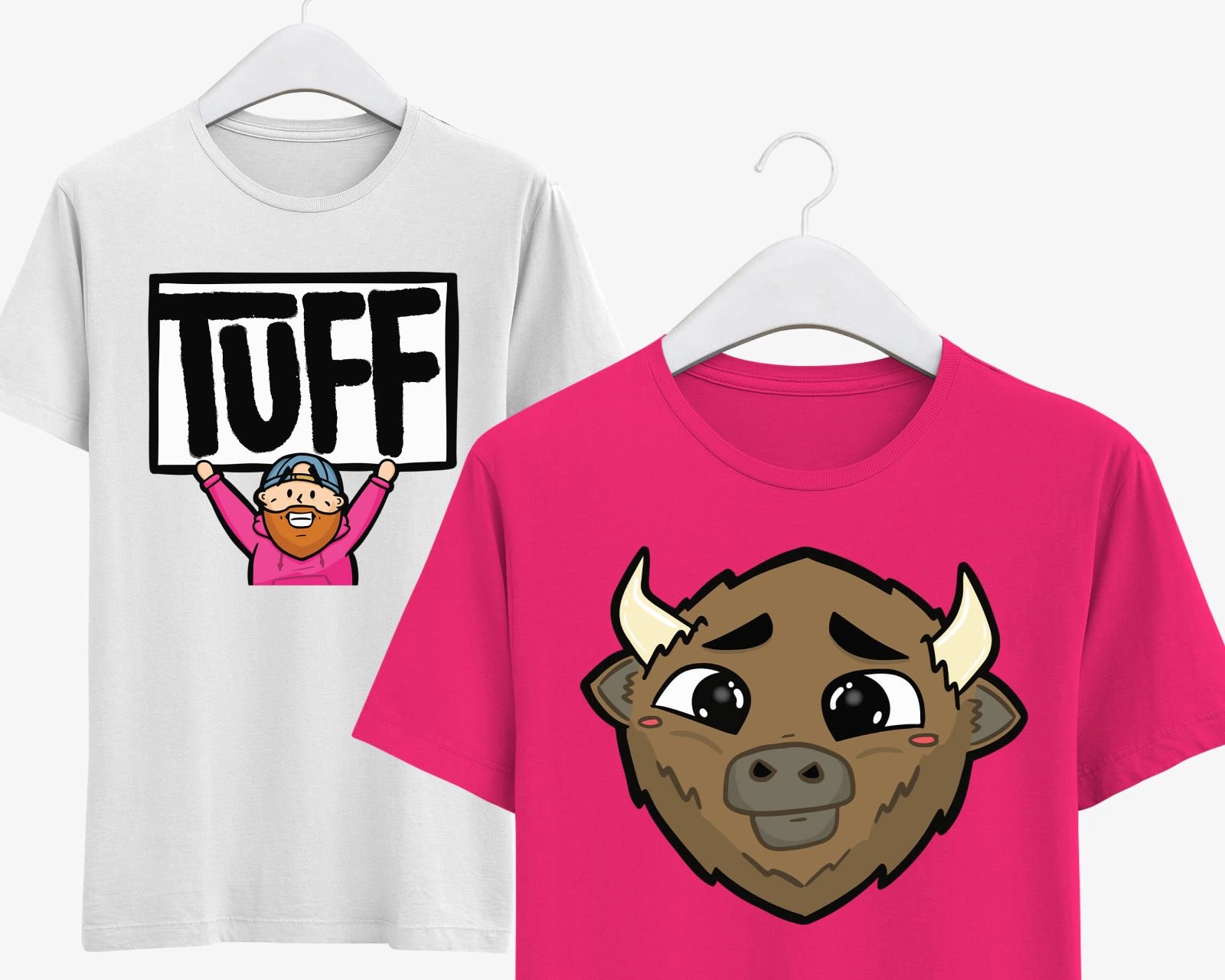 These tees are definitely more goofy! For his viewers who love to use the custom emotes I designed for him, they can go and buy a shirt with it. Most of the emotes are based on Alan, his stuffed bison and stream companion.