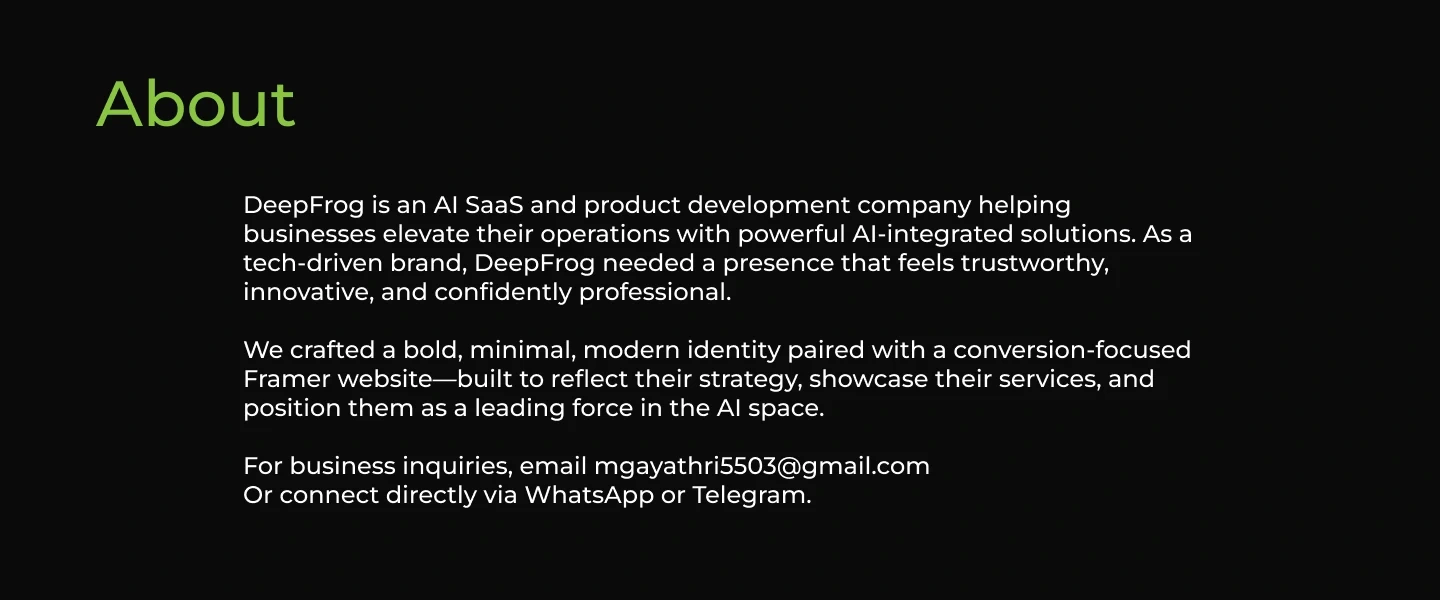 DeepFrog is an AI SaaS and product development company building advanced AI-powered tools for modern businesses.