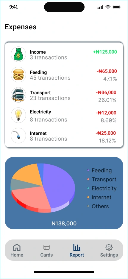 Card Management: Instant card freeze/unfreeze, limit controls, and tracking spending by category.