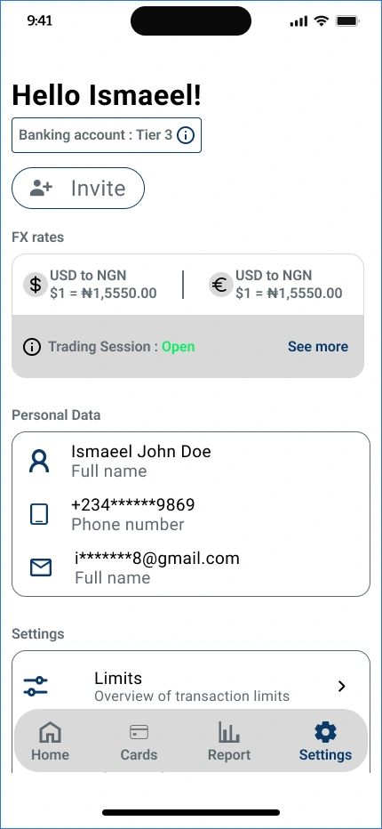 Wireframing: Created streamlined flows for key tasks like daily transactions, bill payments, and card management.