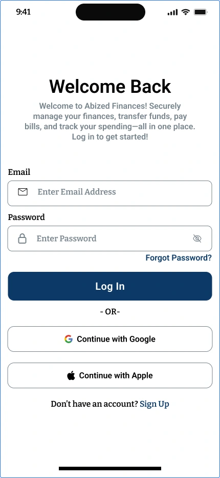 The goal was to design a mobile banking app that helps users easily manage everyday finances — from checking balances to paying bills and controlling cards — all in one simple, intuitive interface.