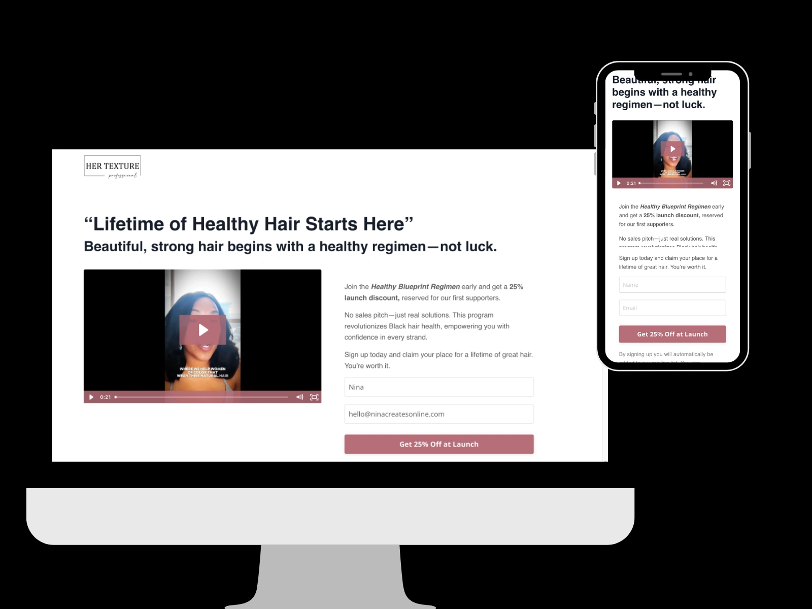 Her Texture Opt-in page with Thank You Page and Shopify Banner by Nina FogdenHer Texture Opt-in page with Thank You Page and Shopify Banner by Nina Fogden