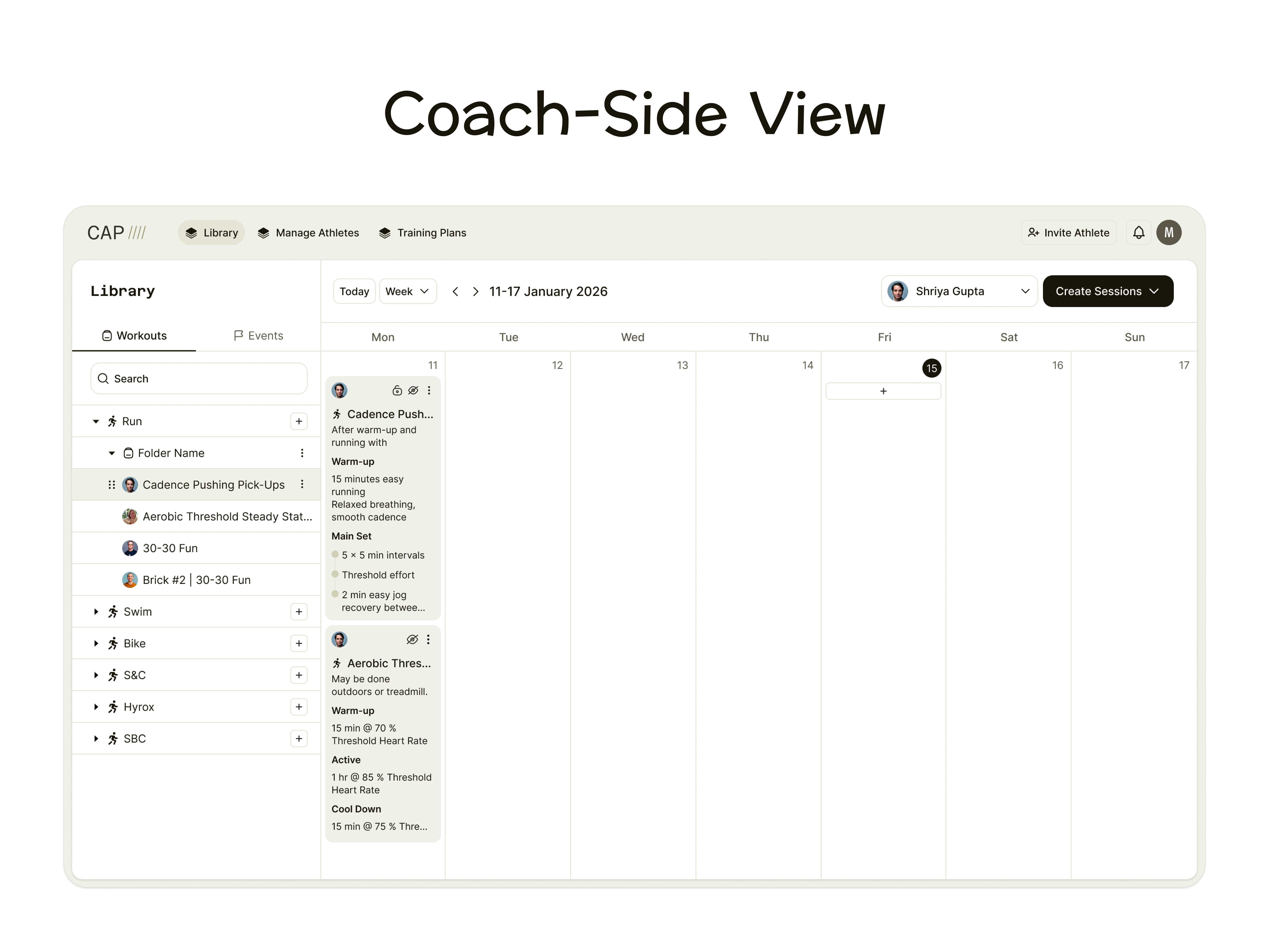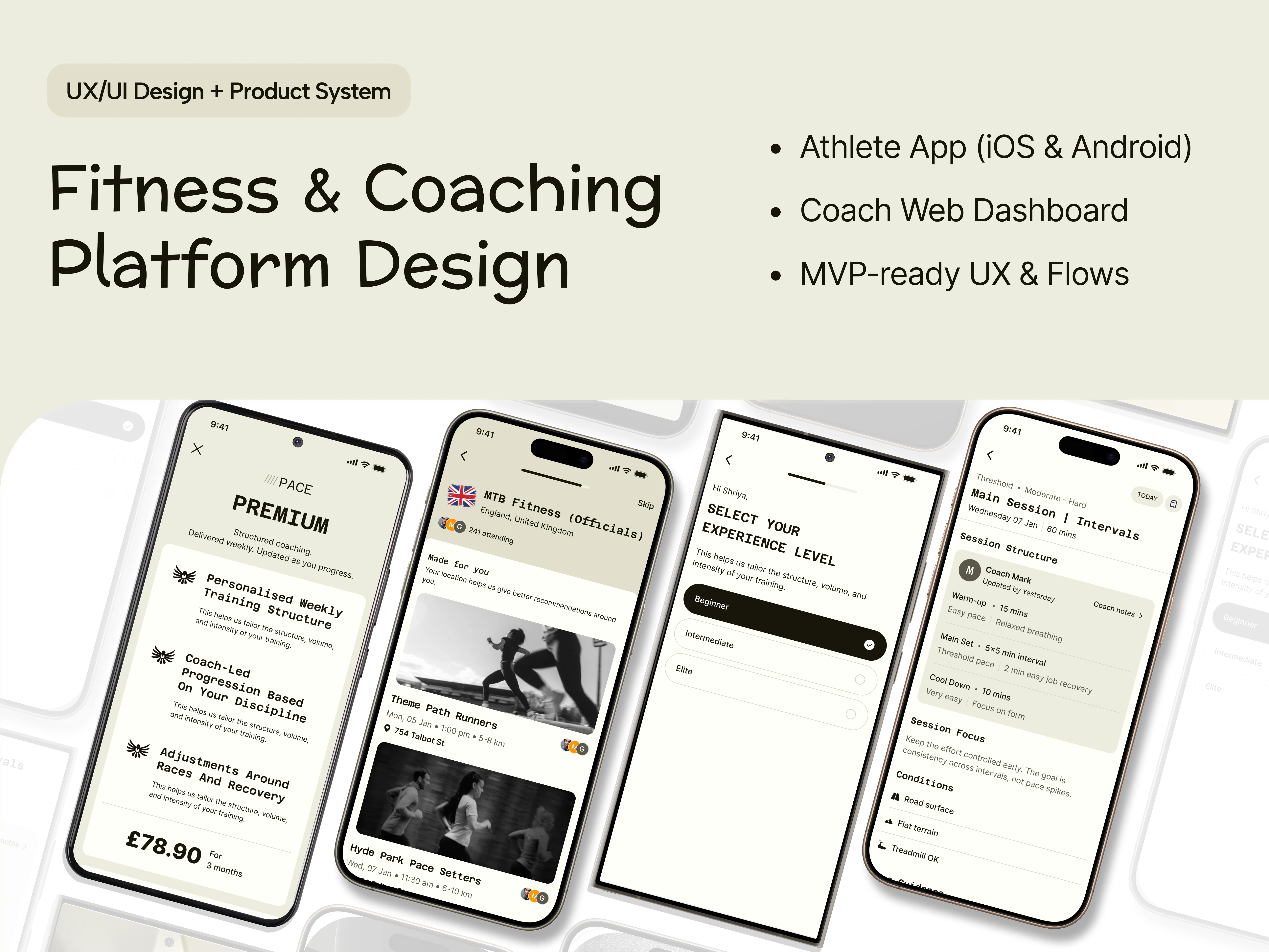 Designed a coaching-first fitness app and web dashboard enabling structured training, session planning, athlete management, and calendar-based workflows