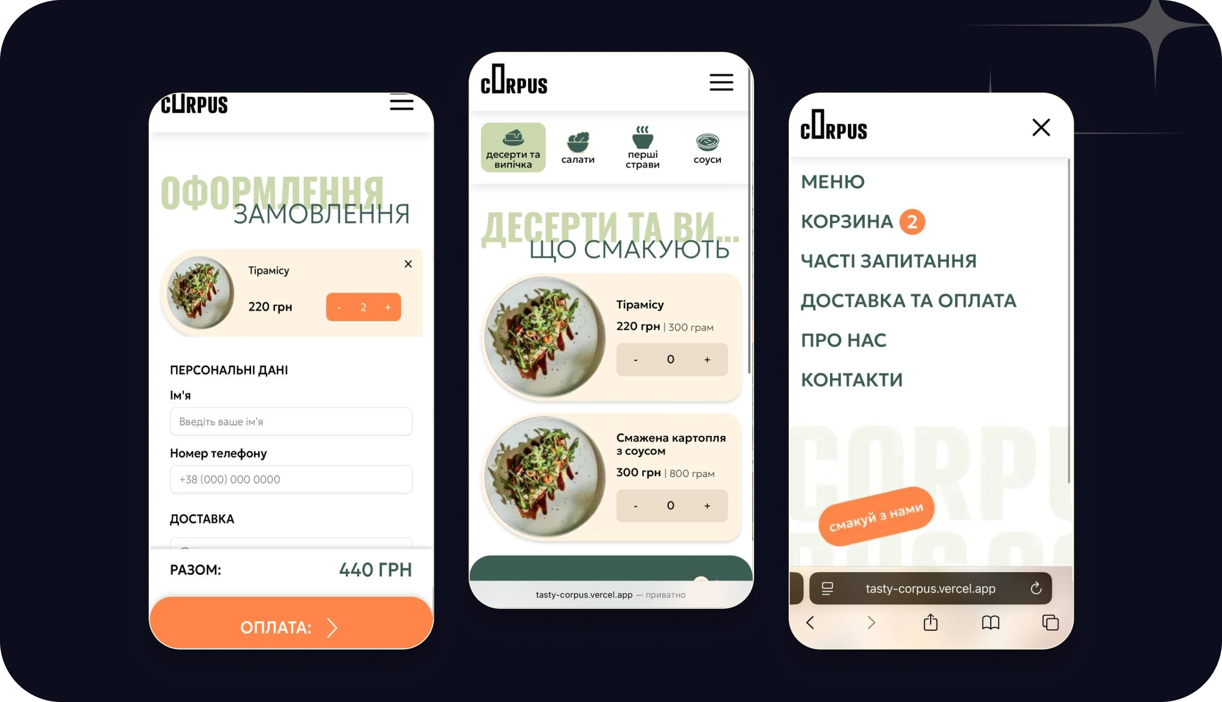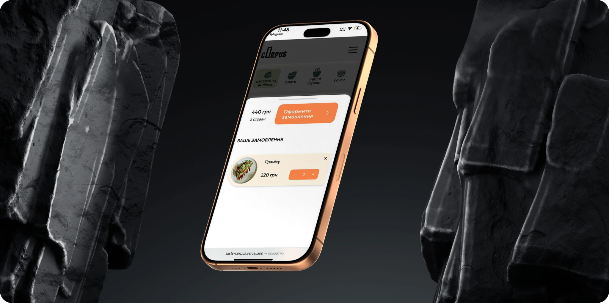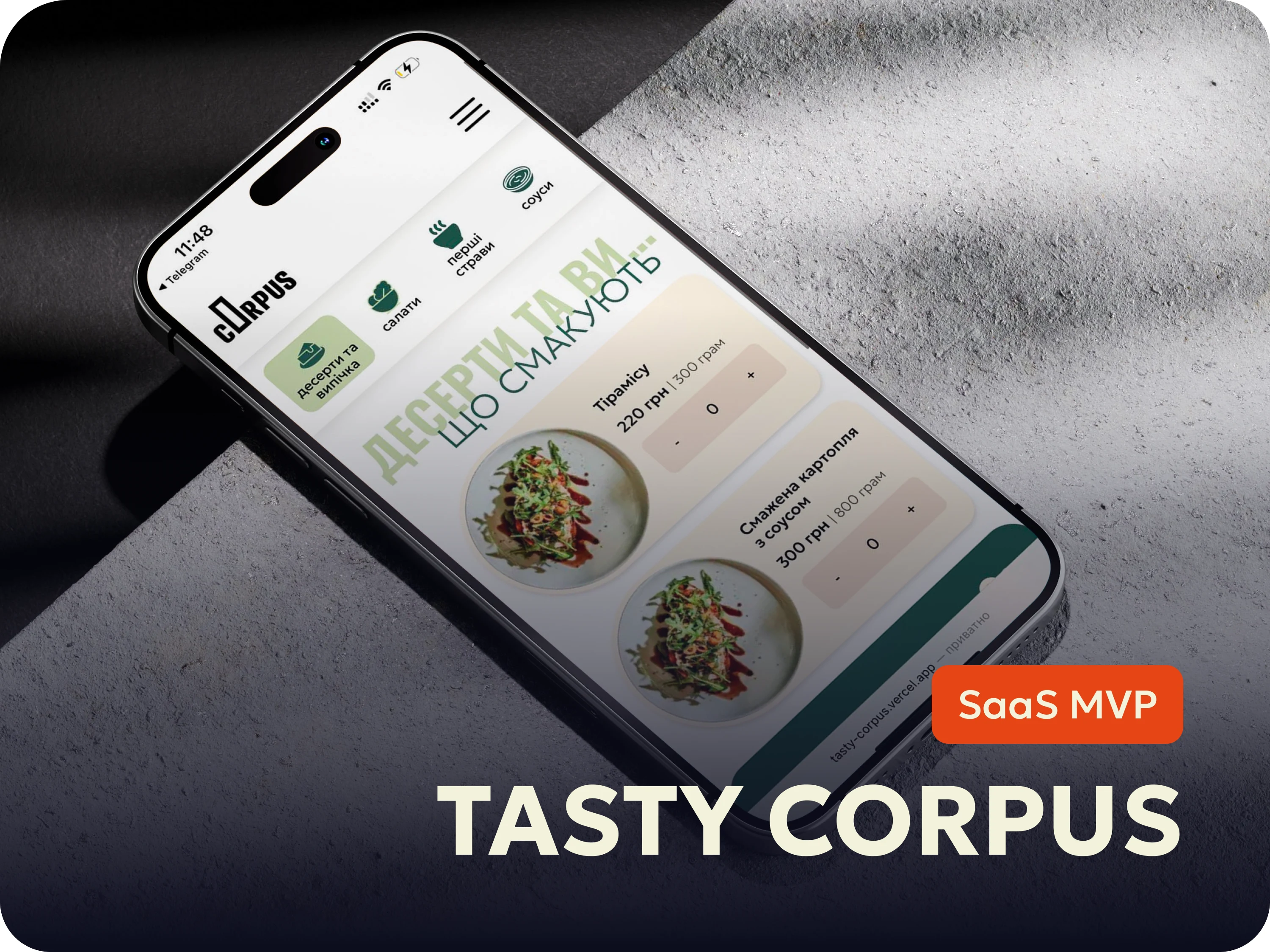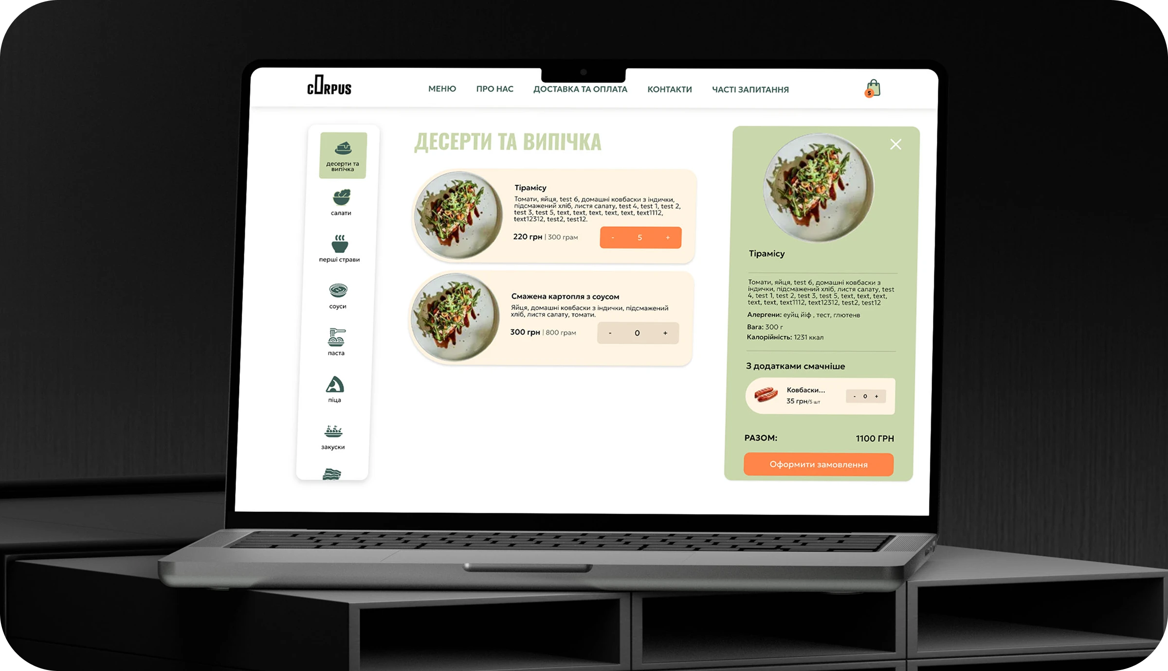 I created a fast and modern food ordering platform built on Next.js 14 and Strapi CMS. The platform includes a clean catalog of meals, a smooth checkout flow with Monobank online payments, and instant Telegram notifications for new orders. Thanks to optimized server components and efficient Strapi architecture, the platform loads quickly, reduces drop-offs during checkout, and increases completed orders.