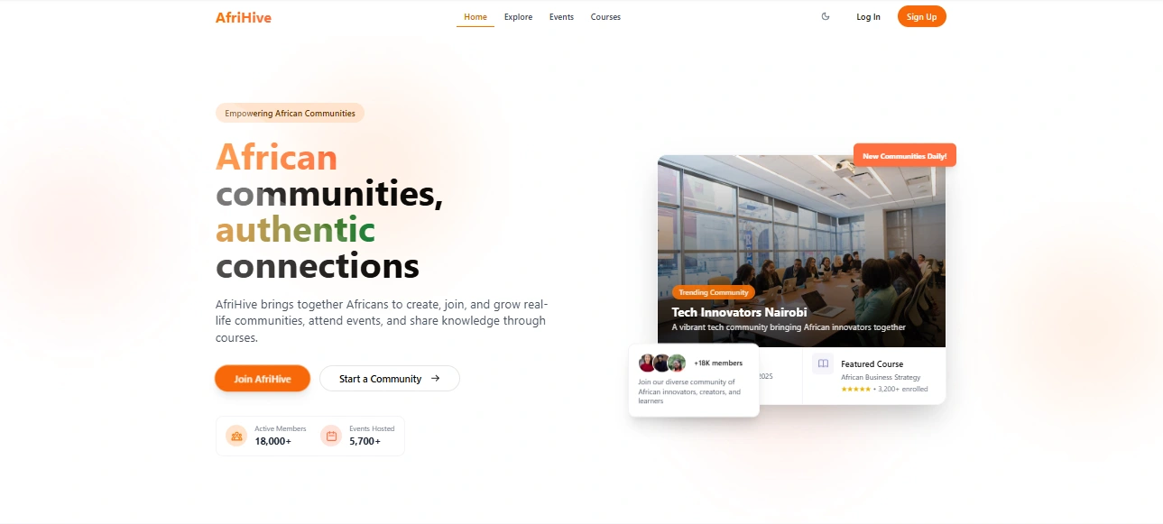 AfriHive brings together Africans to create, join, and grow real-life communities, attend events, and share knowledge through courses.