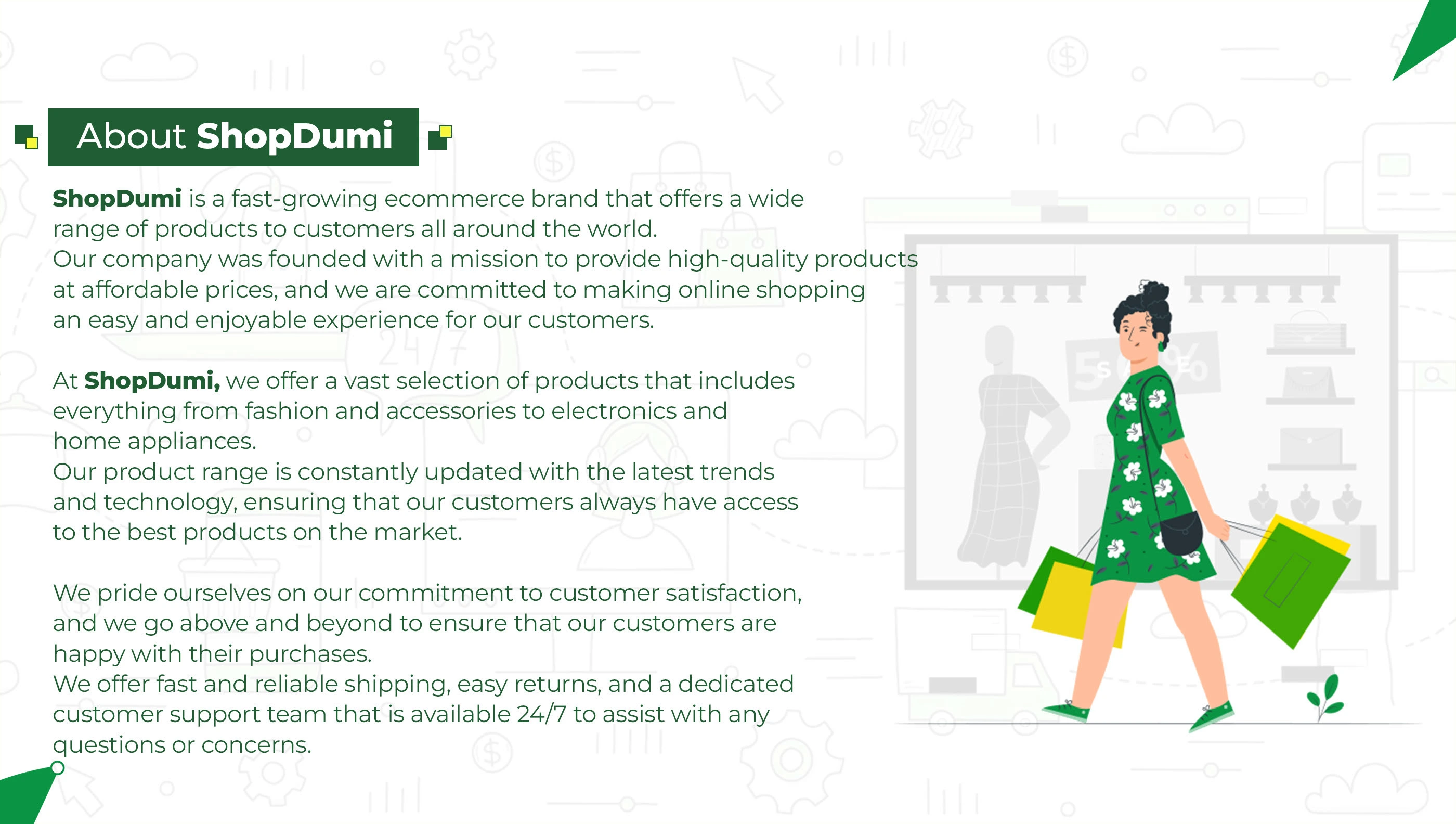 The goal of this project was to develop a cohesive and visually appealing brand identity for ShopDumi, a dynamic eCommerce platform where users can buy and sell