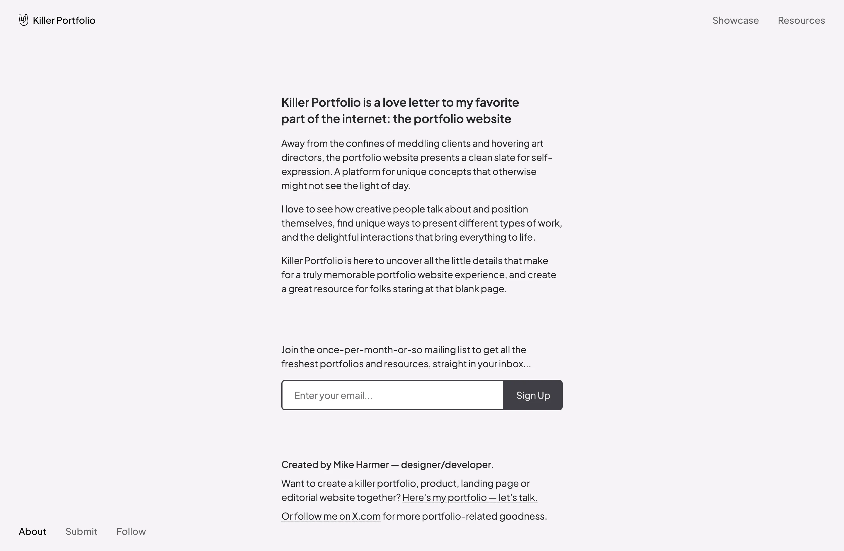 Killer Portfolio is a love letter to my favorite part of the internet — here to bring you inspiration, insight and resources to help with your own portfolio.