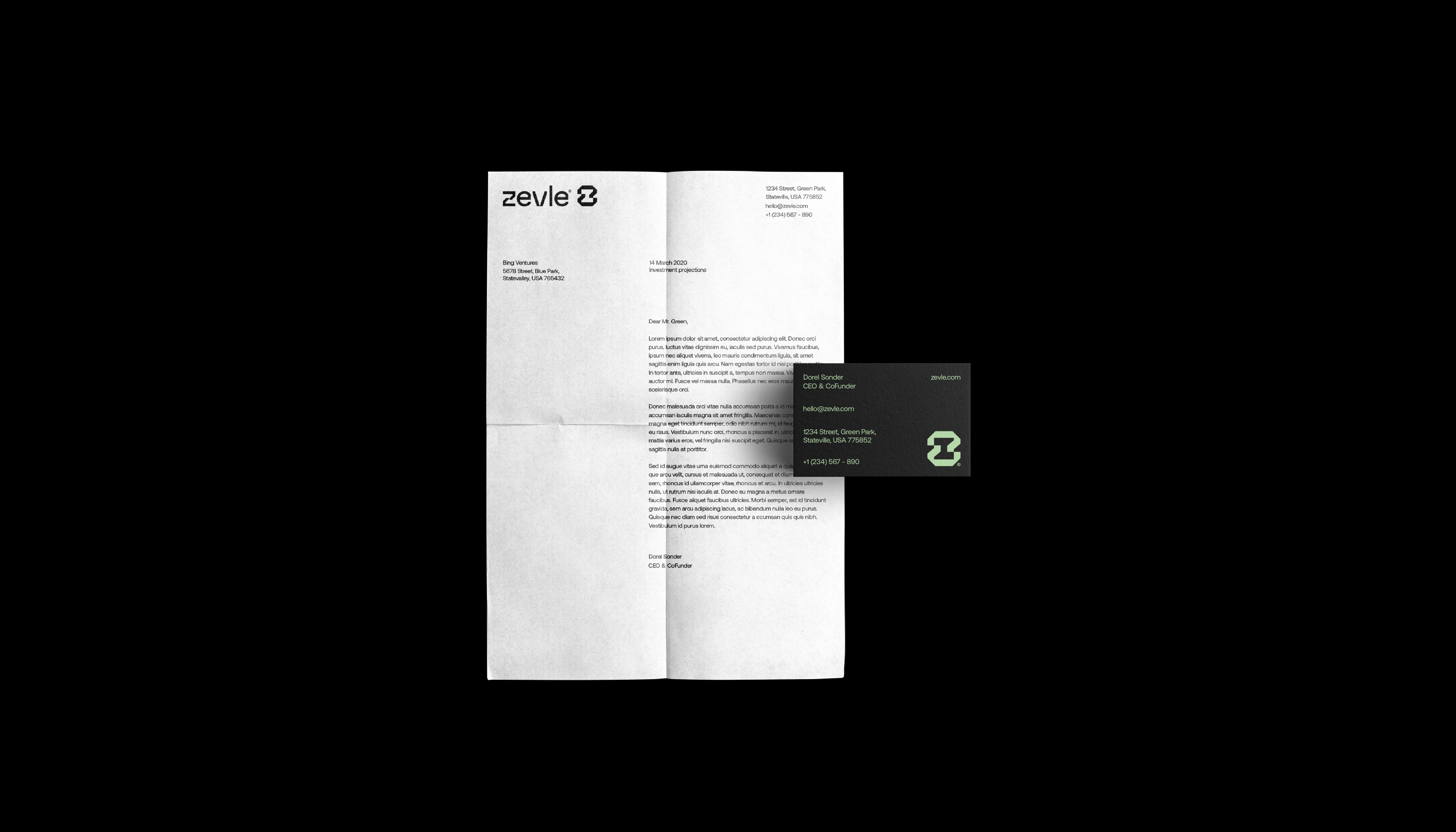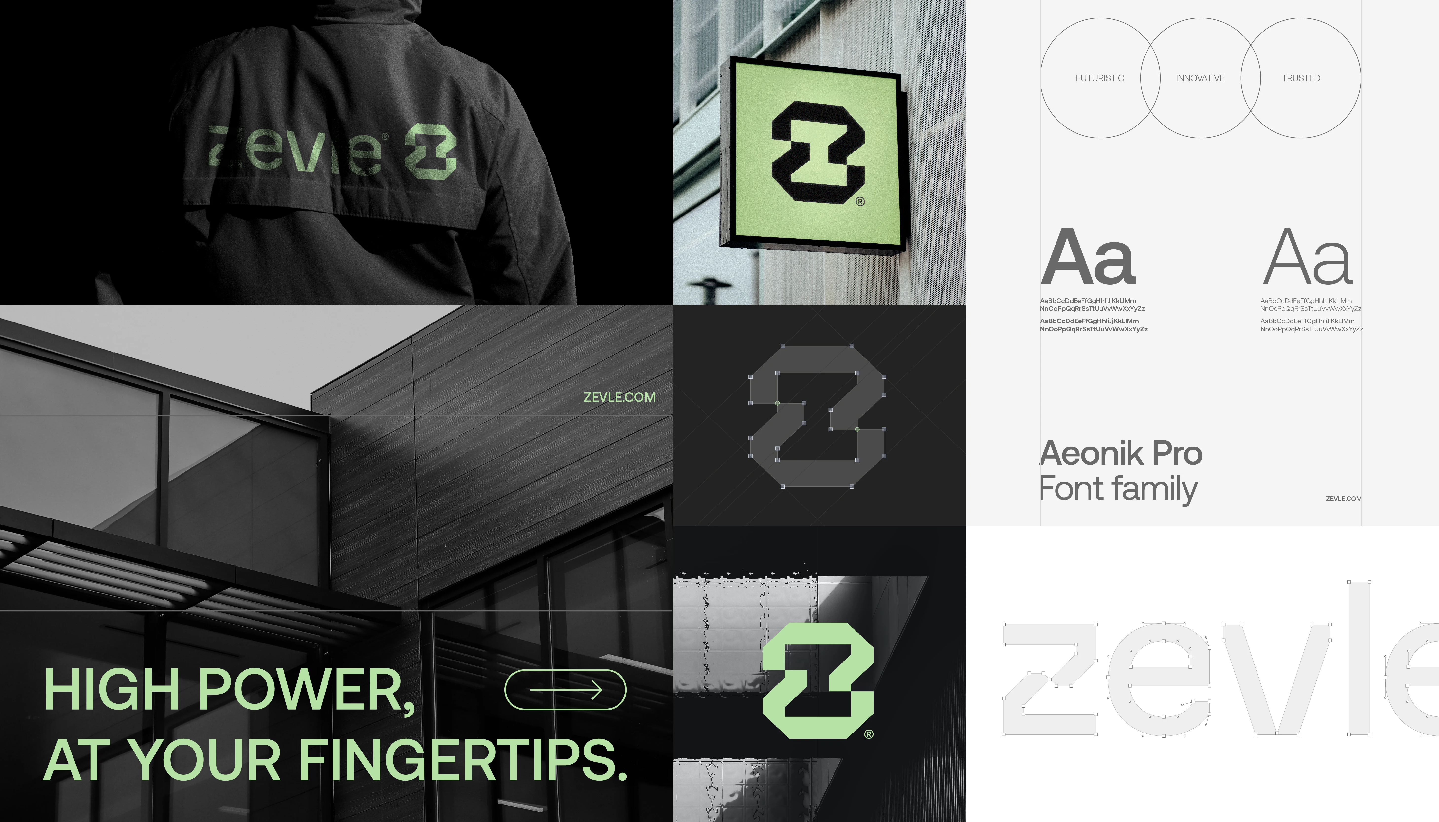 zevle® creates powerful data analysis tools focused on renewable energy, with a bold symbol and custom font reflecting the balance of power and efficiency.