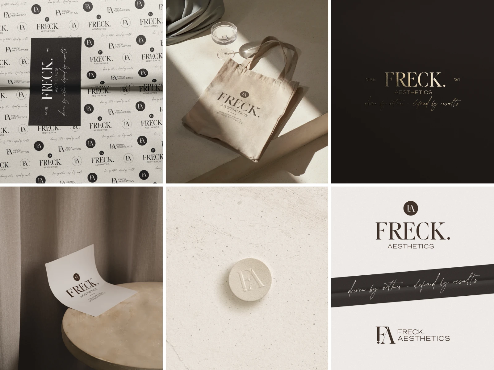 Freck. Aesthetics is crafted for health-conscious clients aged 25-50 who believe that healthy skin is more important than perfect skin. The brand embraces a high-end, timeless aesthetic, combining luxury with authenticity to create a space where clients feel confident in their natural beauty.