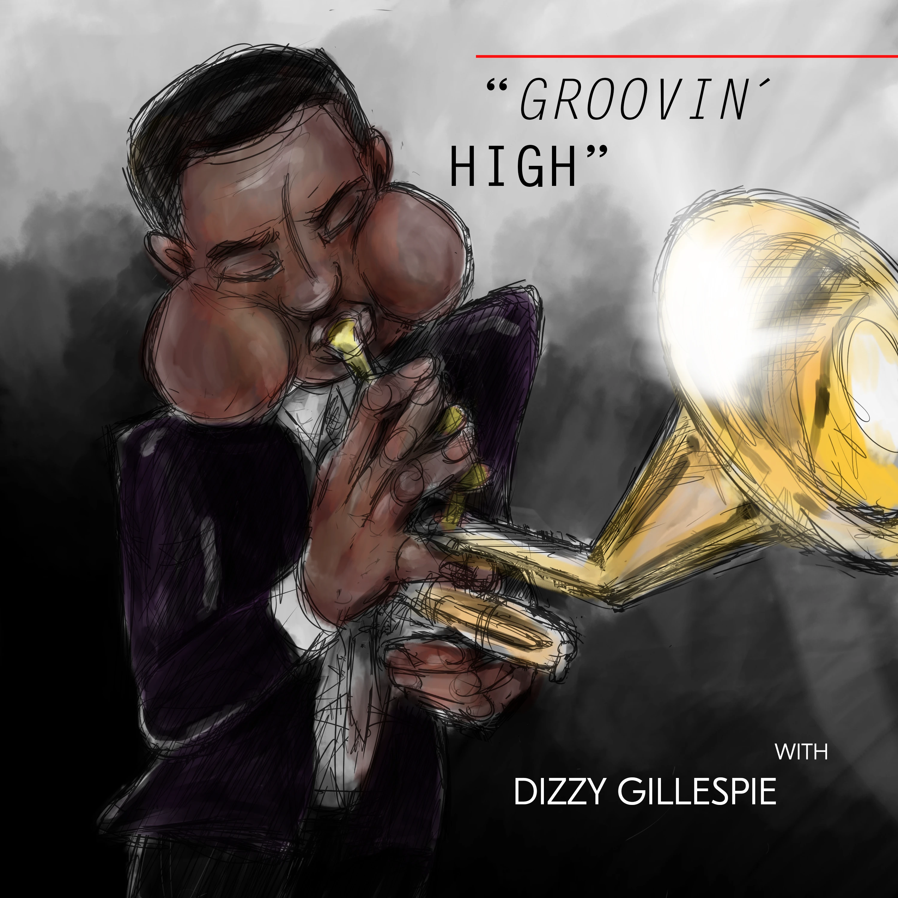 Expressive lines and shades portray the masters of Jazz: Dizzy Gillespie and Bill Evans.