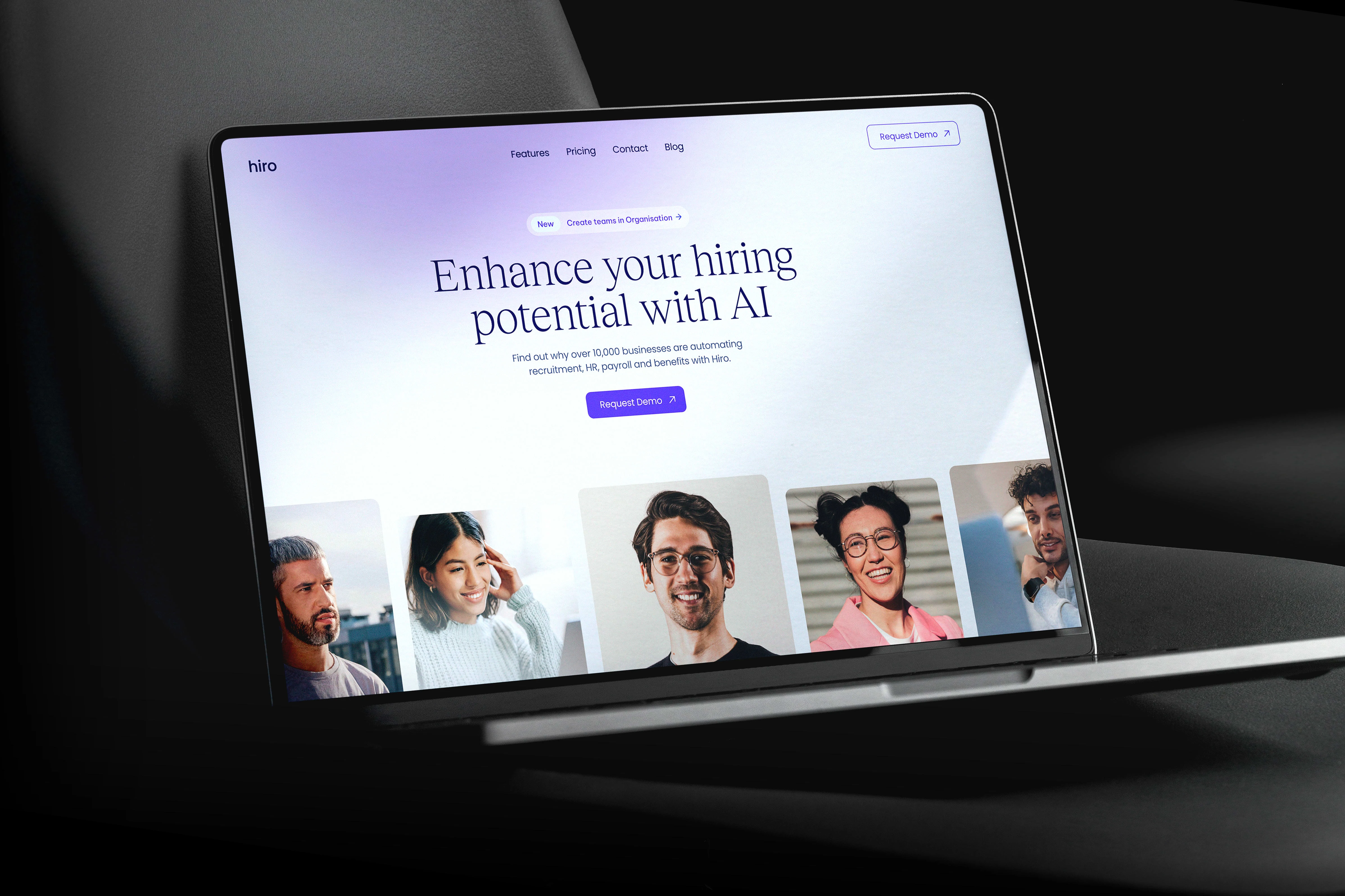 Landing page for Hiro, an AI powered hiring tool. Designed in Figma and built in Framer.