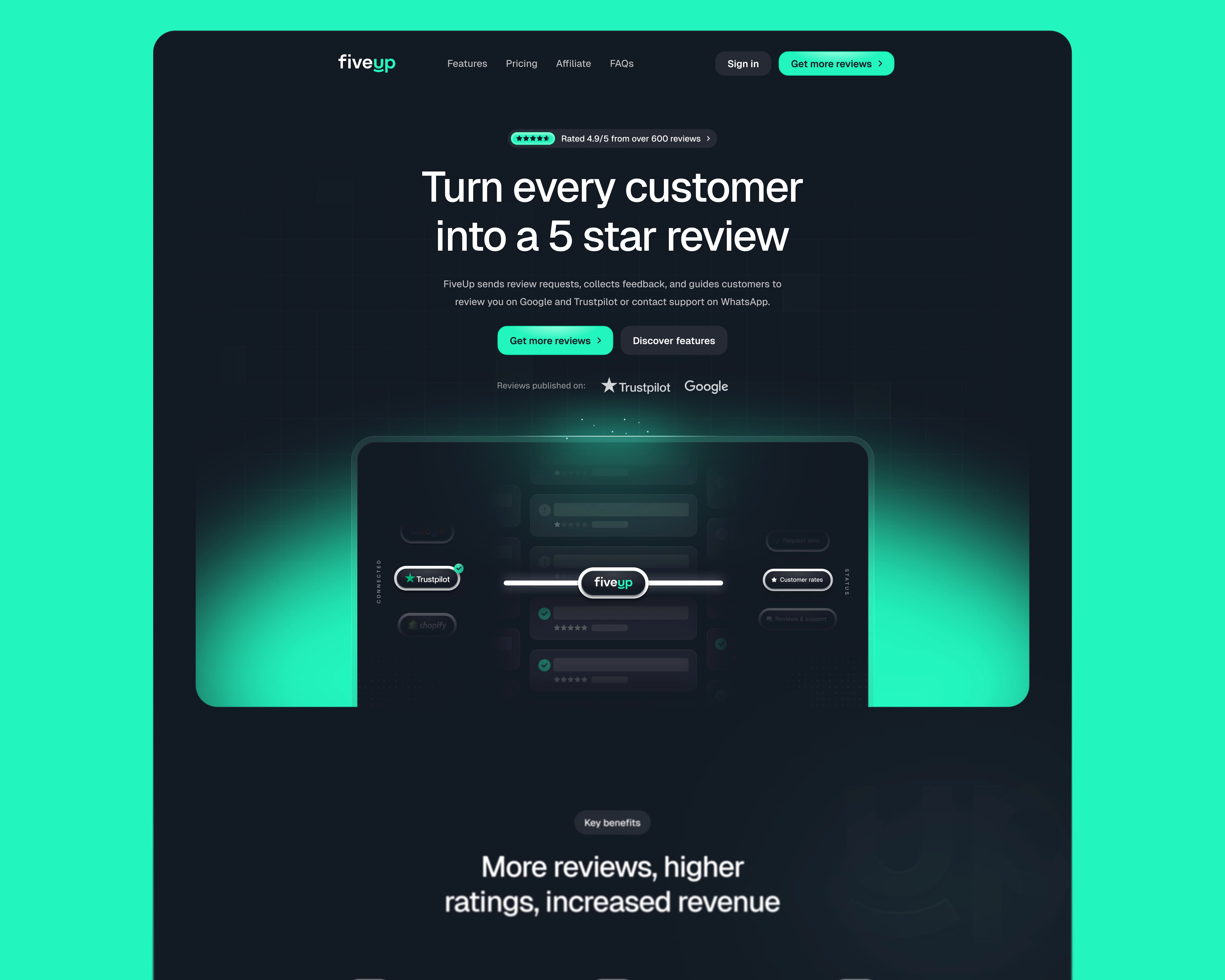 FiveUp helps brands automate review requests and manage customer feedback across platforms.