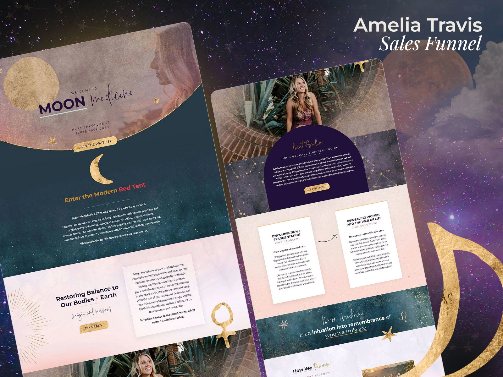 This was my very first Kajabi Expert project, and it was an exciting experience. Amelia provided mystical and astrology-themed graphic elements, which I incorporated into the design to create beautiful background and image assets. She was a pleasure to work with, and the project came together wonderfully!