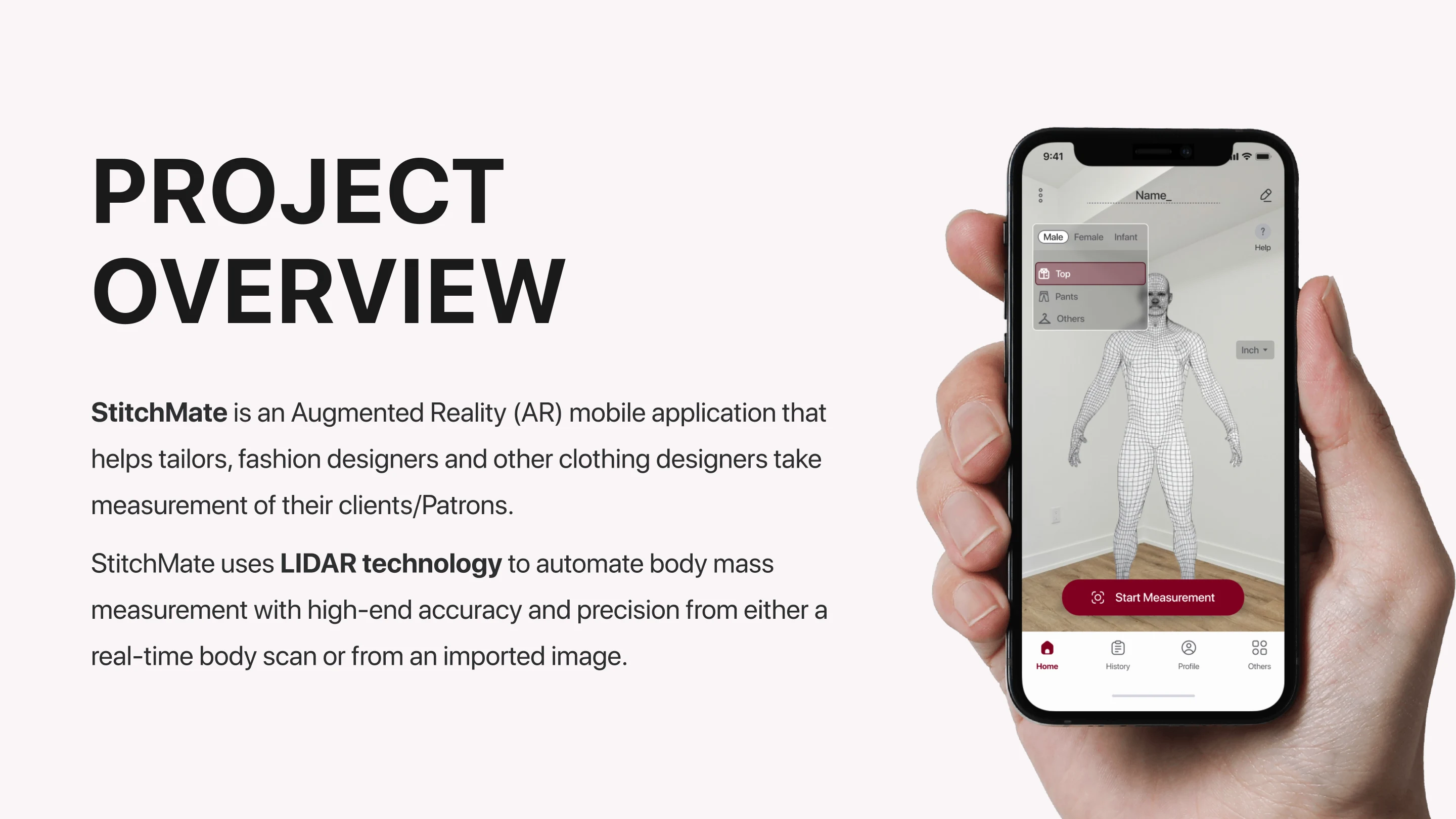 An Augmented Reality(AR) mobile app that helps tailors, fashion designers and other clothing designers measure their clients. The app runs on LIDAR technology.