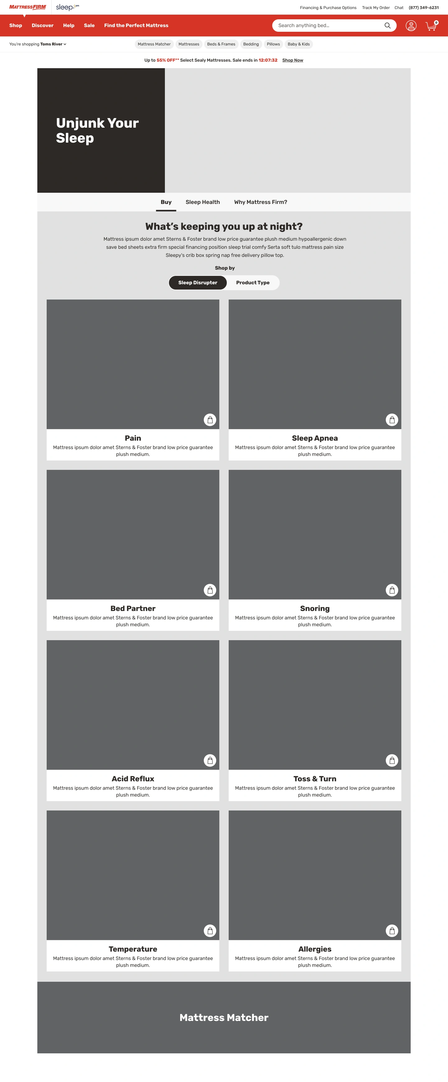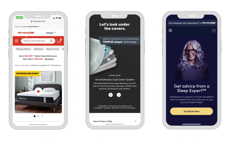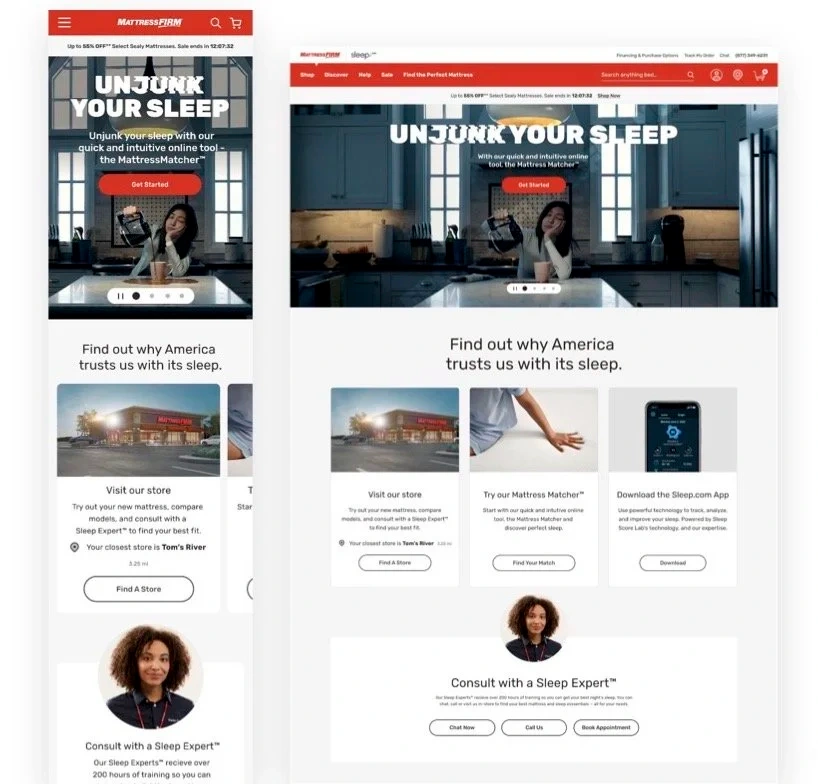 Led the UX redesign of MattressFirm.com during platform migration from SalesForce to Microsoft D365, creating sleep disruptor-focused experiences.