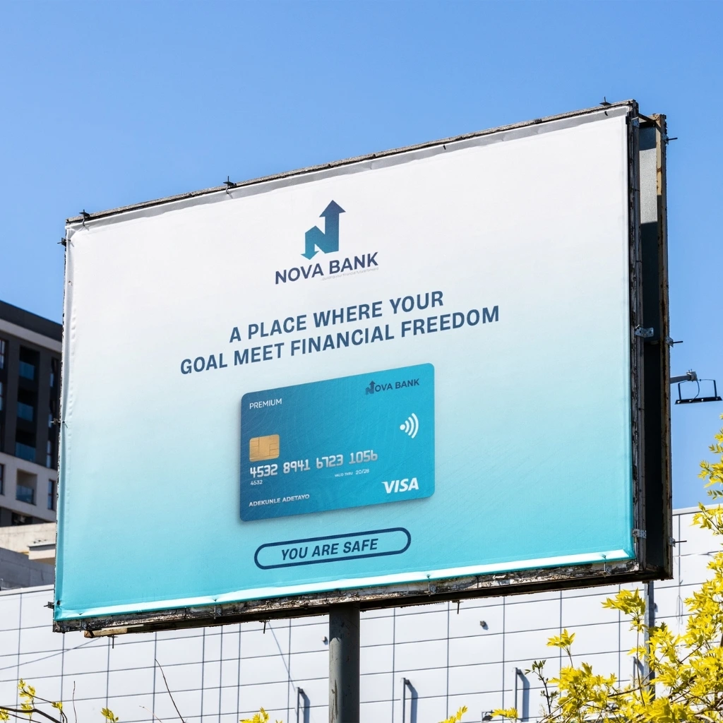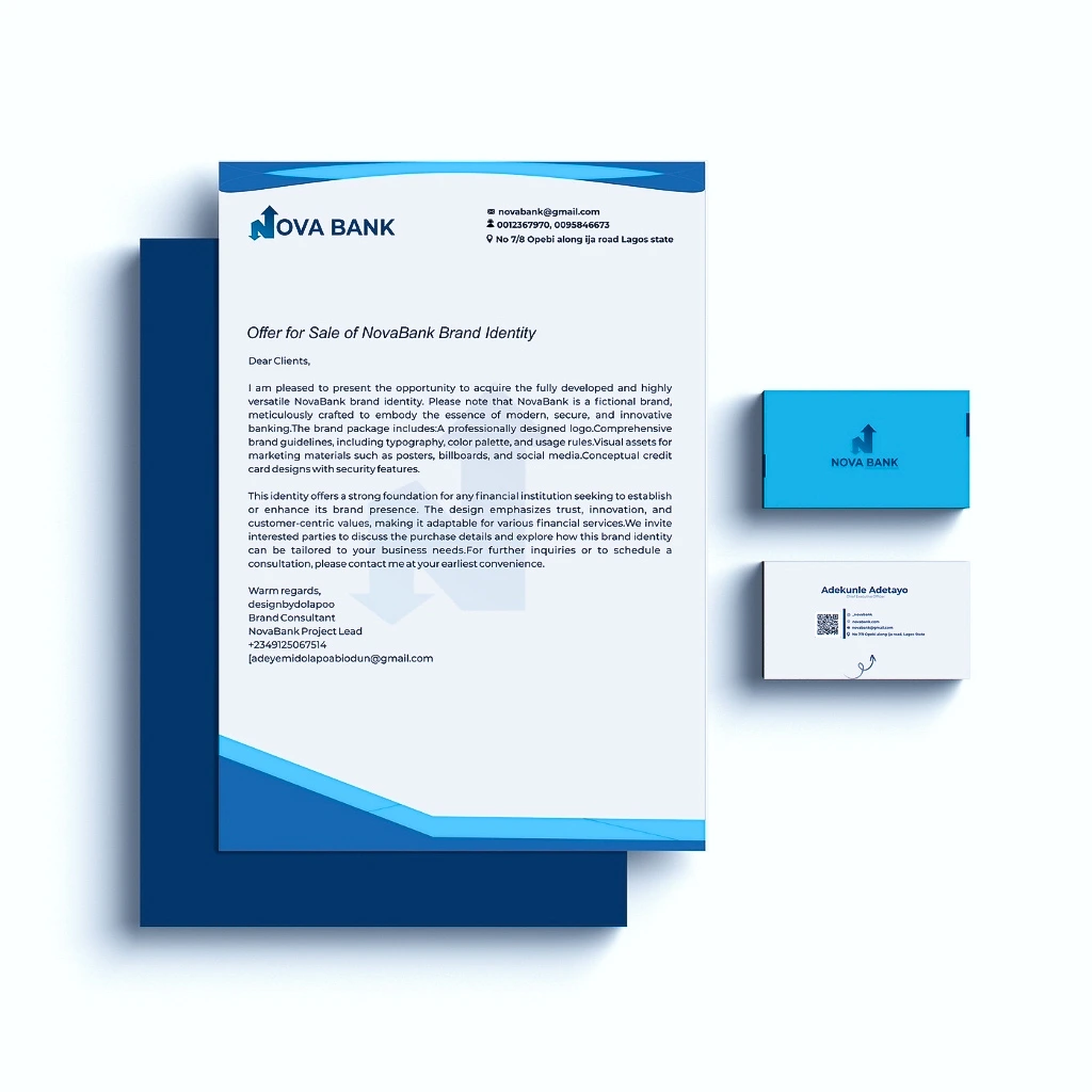 NovaBank is a fictional financial institution designed to embody the ideals of innovation, security, and trust. The brand caters to modern banking needs while positioning itself as a reliable partner in financial growth. The NovaBank project includes a comprehensive brand identity with a clean, sophisticated design approach that resonates with a diverse audience, from young professionals to corporate entities.