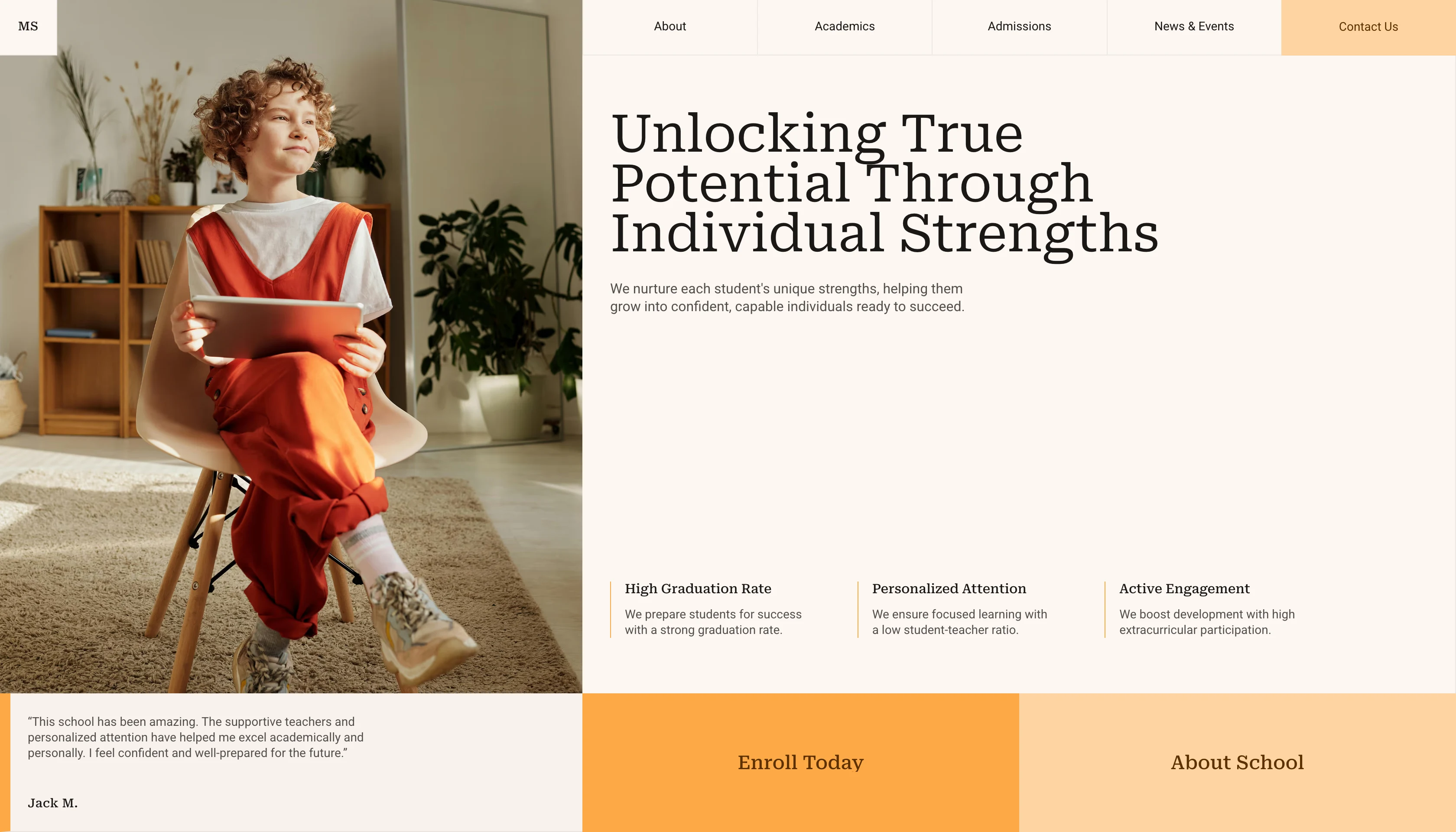 Design and Implement clean UI interface and backend integration for the admission of students, showcase and publicity of the school