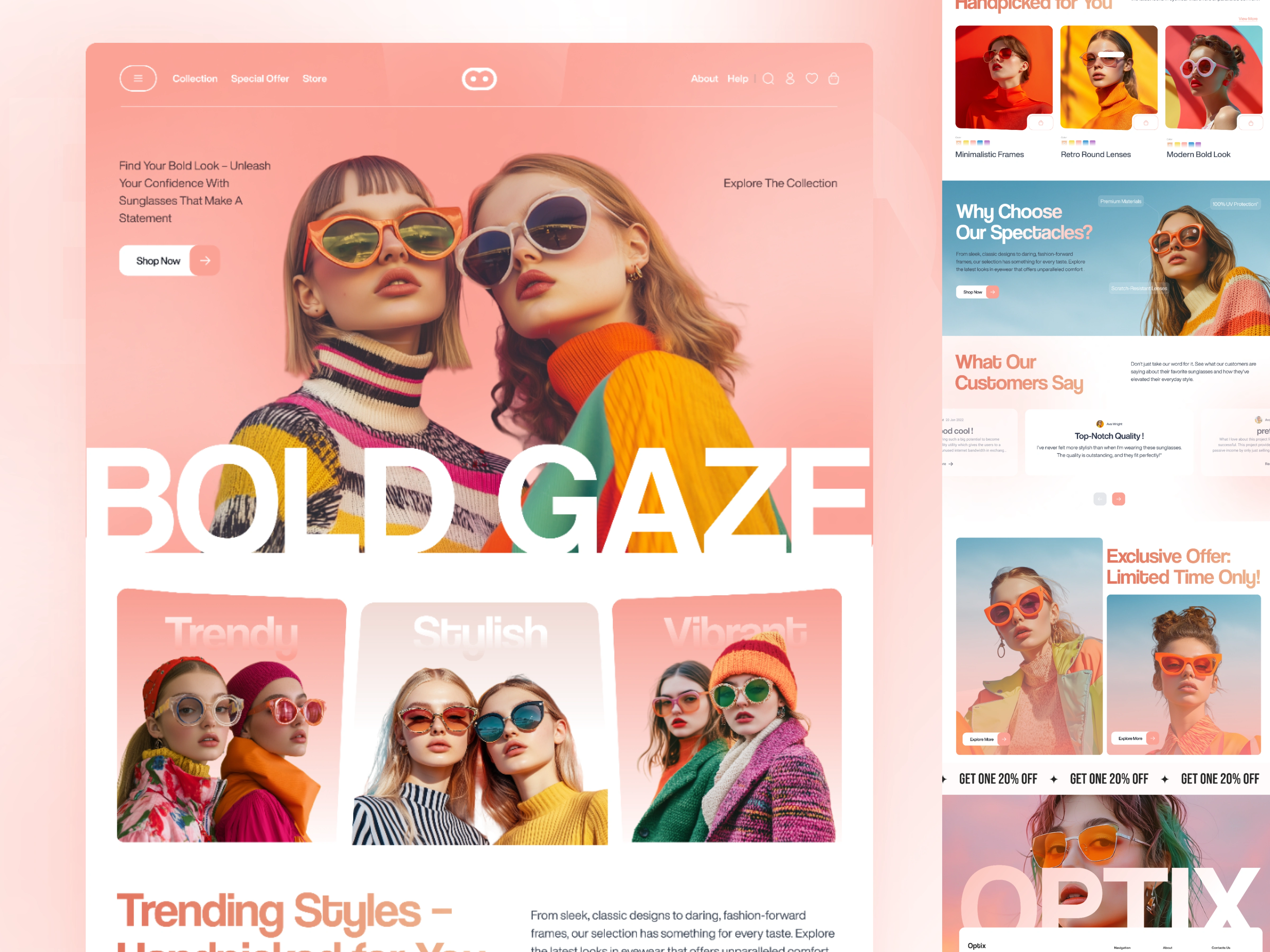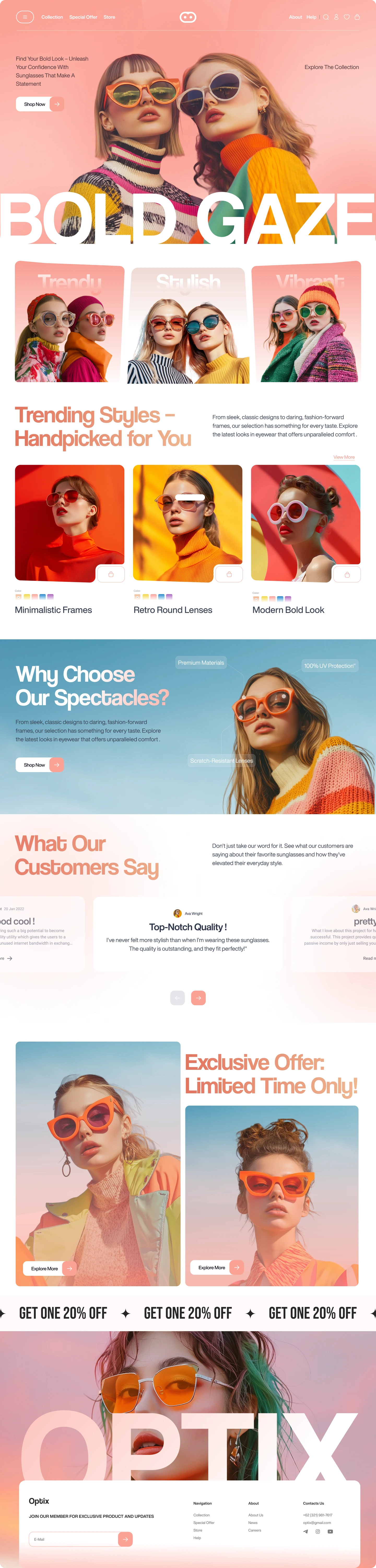 Landing page design a visually striking and highly engaging landing page for a new sunglasses brand aimed at confident, trendsetting individuals.