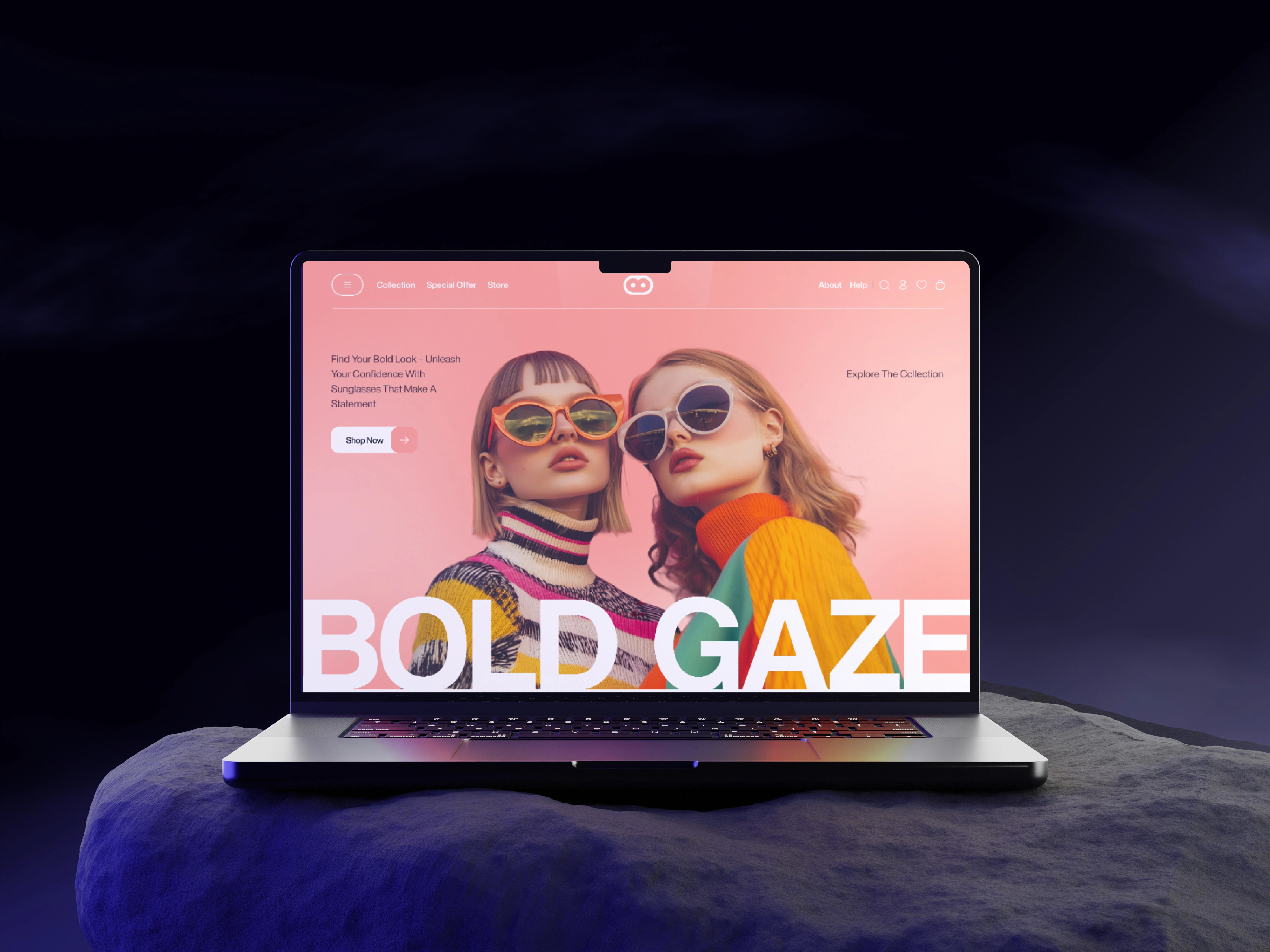 The objective of this shot was to design a visually striking and highly engaging landing page for a new sunglasses brand aimed at confident, trendsetting individuals. The brand focuses on bold, stylish eyewear for those who embrace challenges and push boundaries in their personal and professional lives. The design needed to reflect the brand’s core values—confidence, boldness, and fashion-forward style—while offering a seamless user experience.