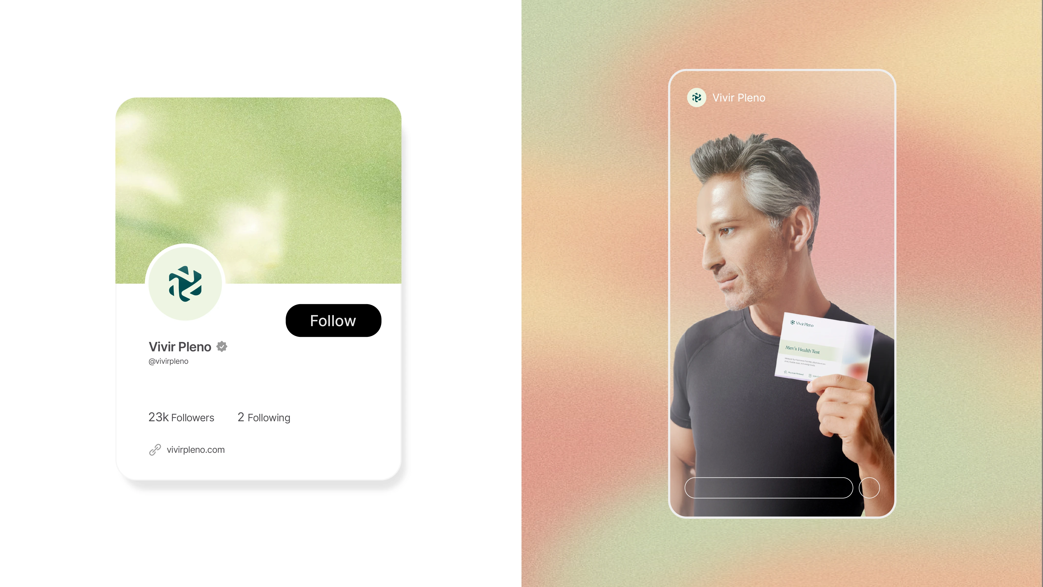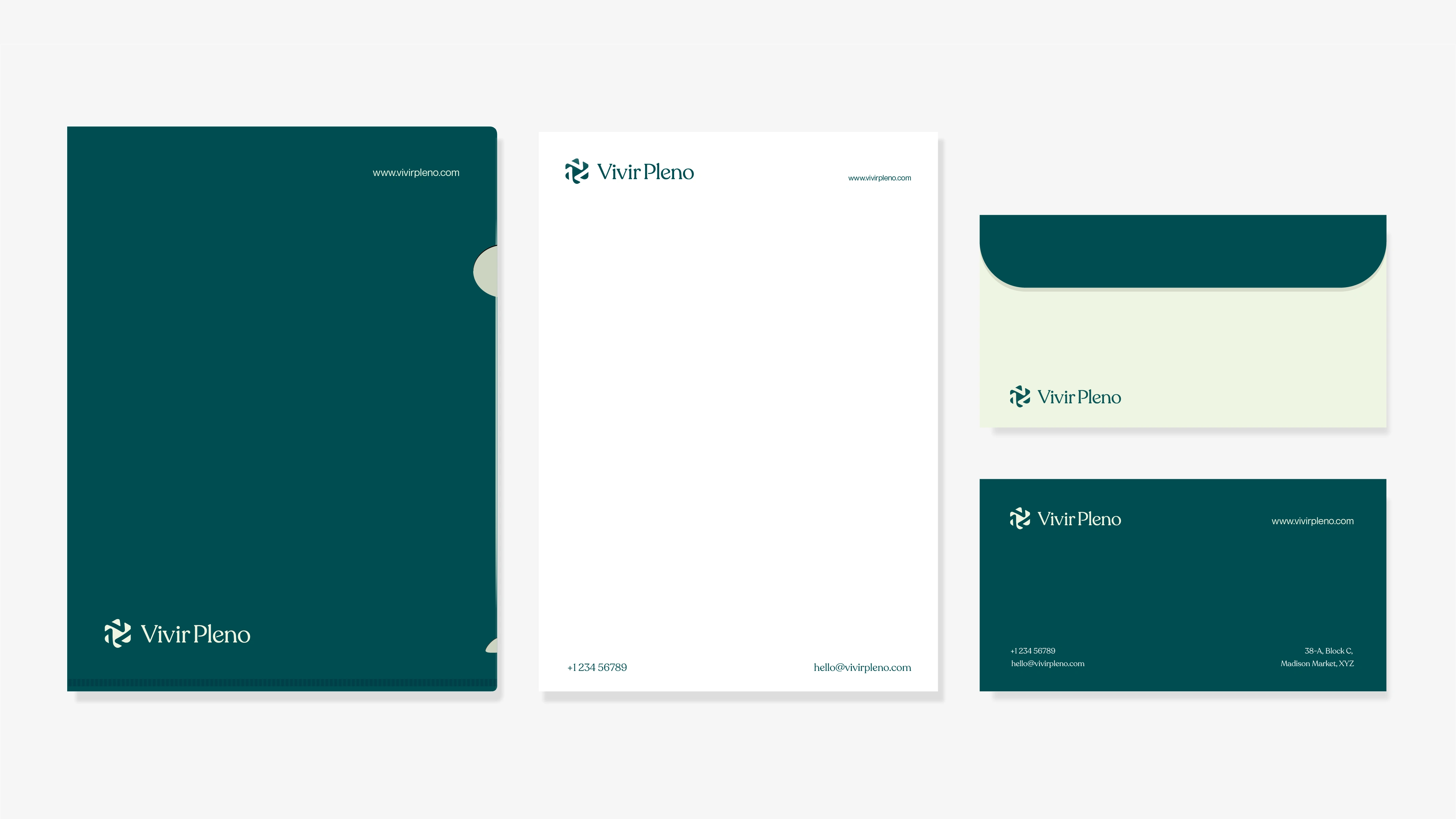 Our design approach for Vivir Pleno focused on minimalism, clarity, and generous use of space. Subtle noise gradient graphics, built from soft tonal transitions and smooth patterns, elevates the identity and makes it adaptable across a wide range of applications.