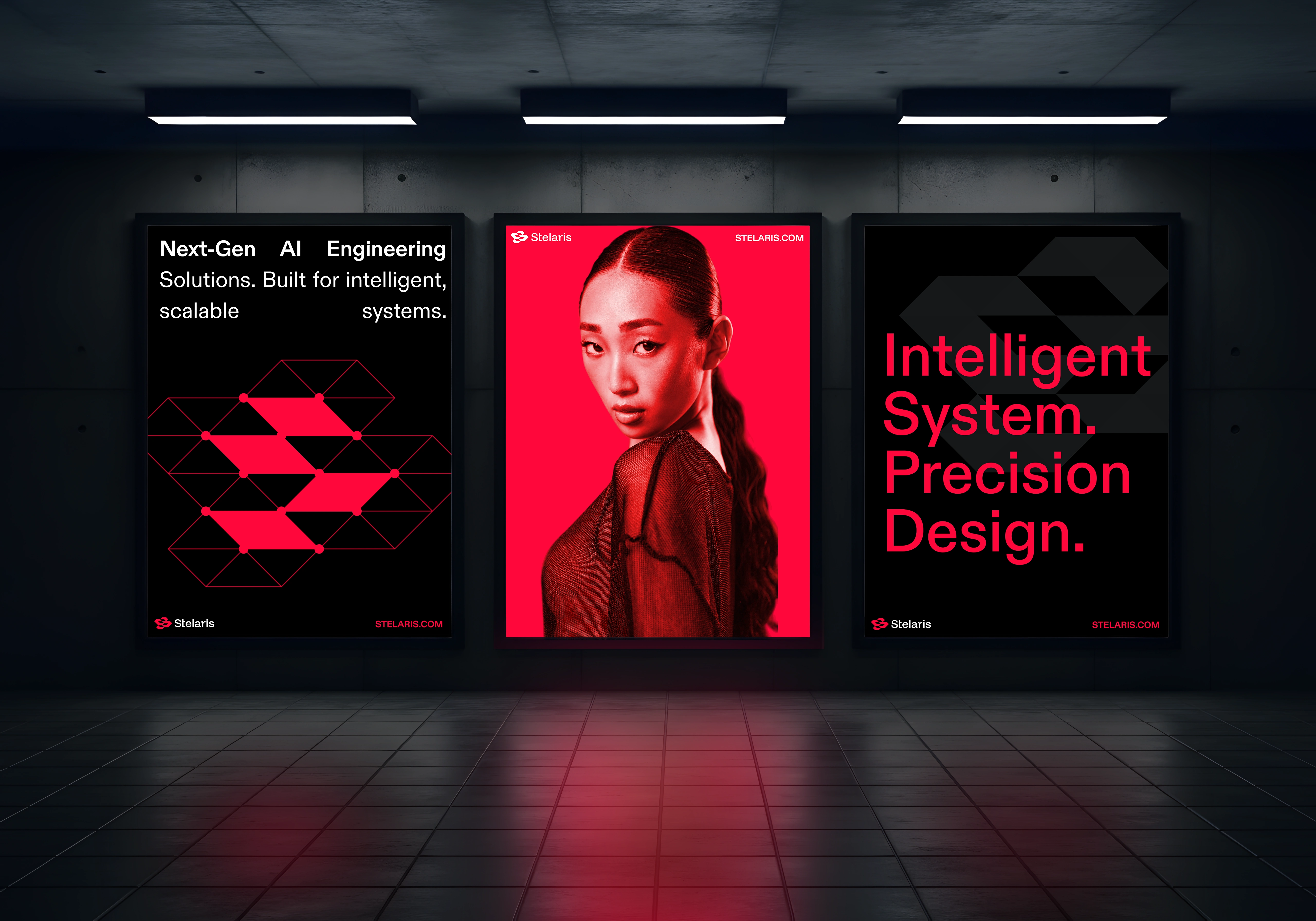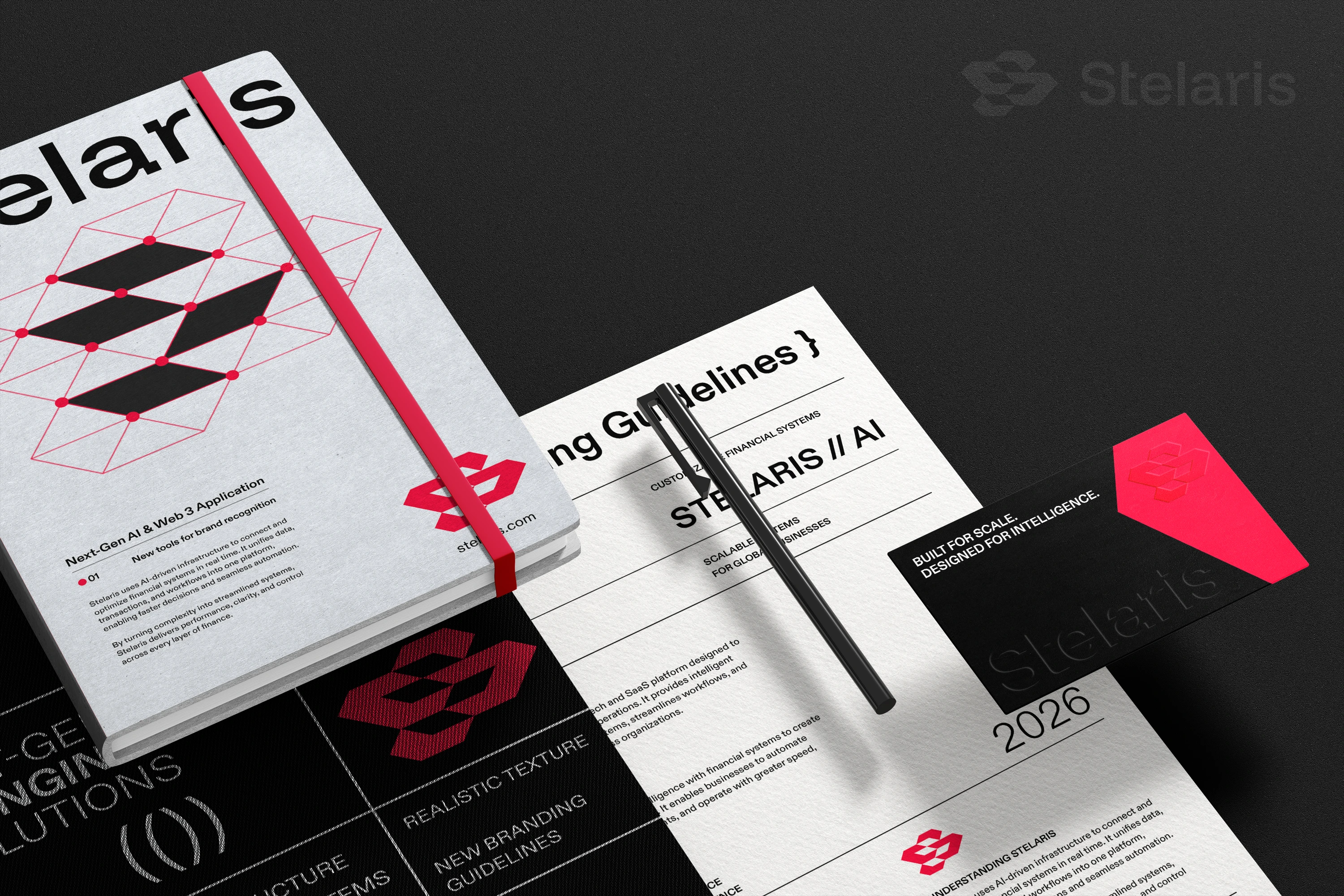 Complete brand identity and logo design for Stelaris, a next-gen AI engineering brand built on precision, intelligent systems, and scalable design.