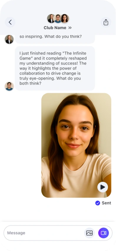 Social discussion: In-app chat, voice/video snippets, and guided prompts
