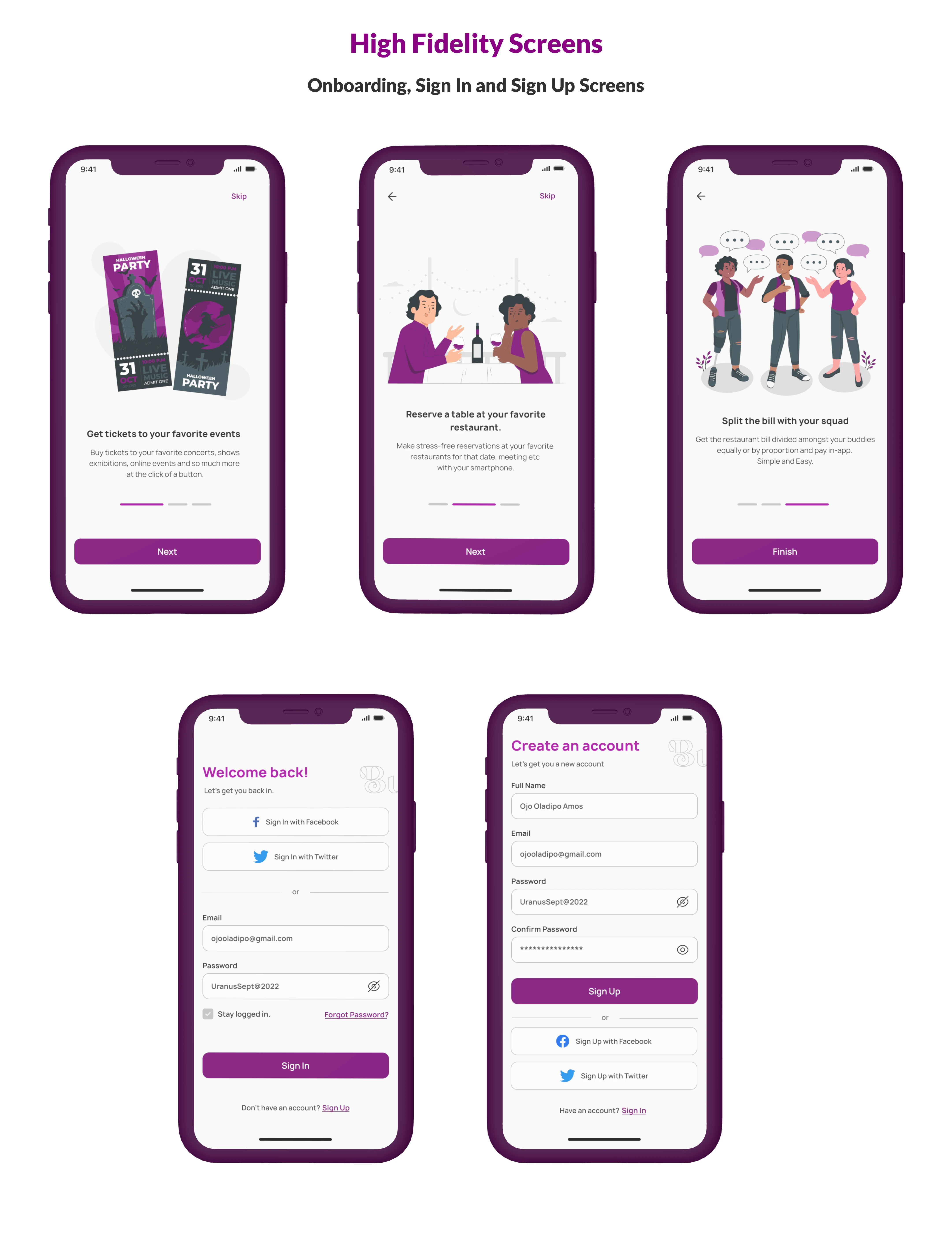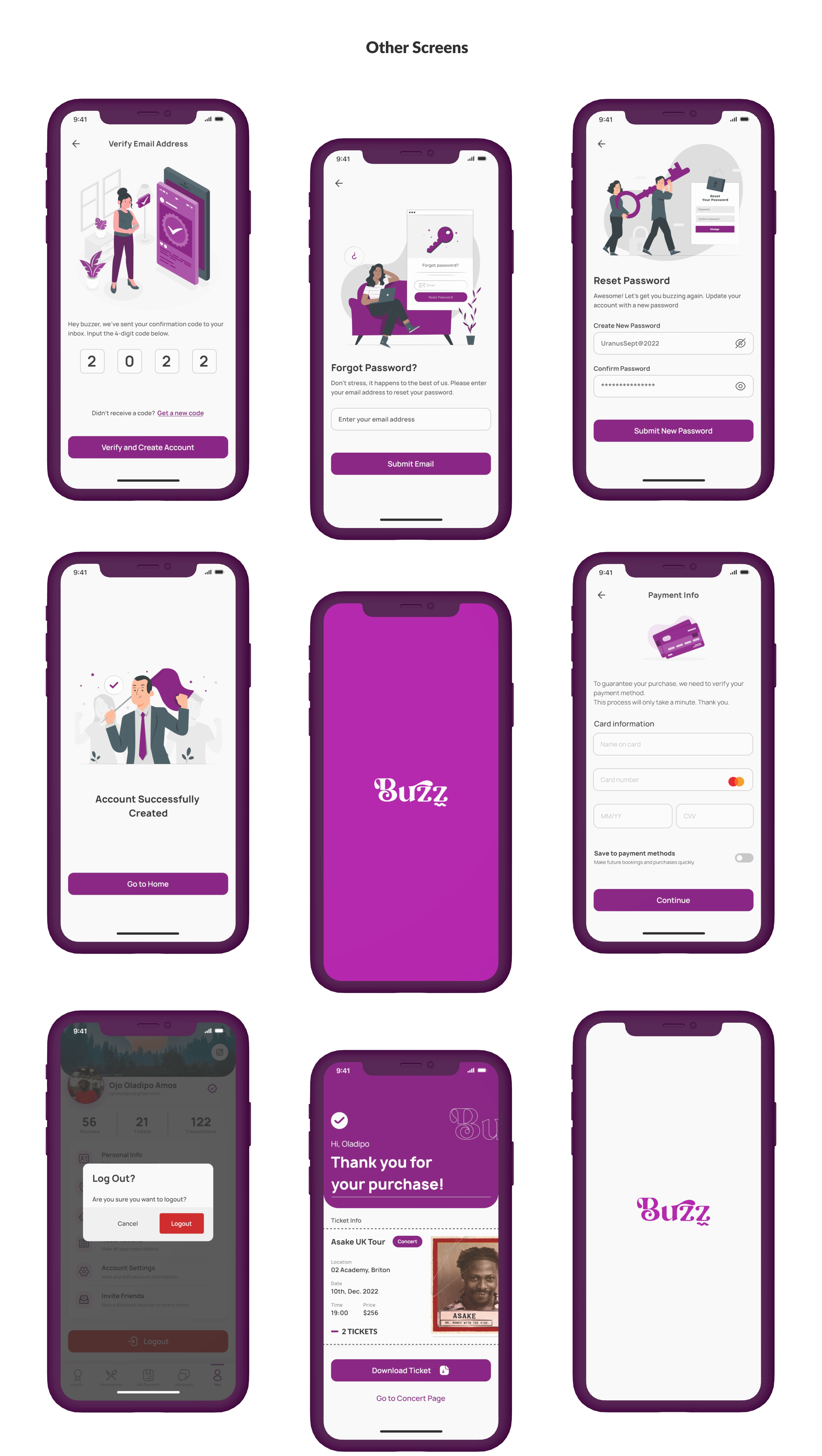 The Buzz App was designed to simplify social experiences by combining ticket booking, reservations, and bill splitting into a single seamless platform.