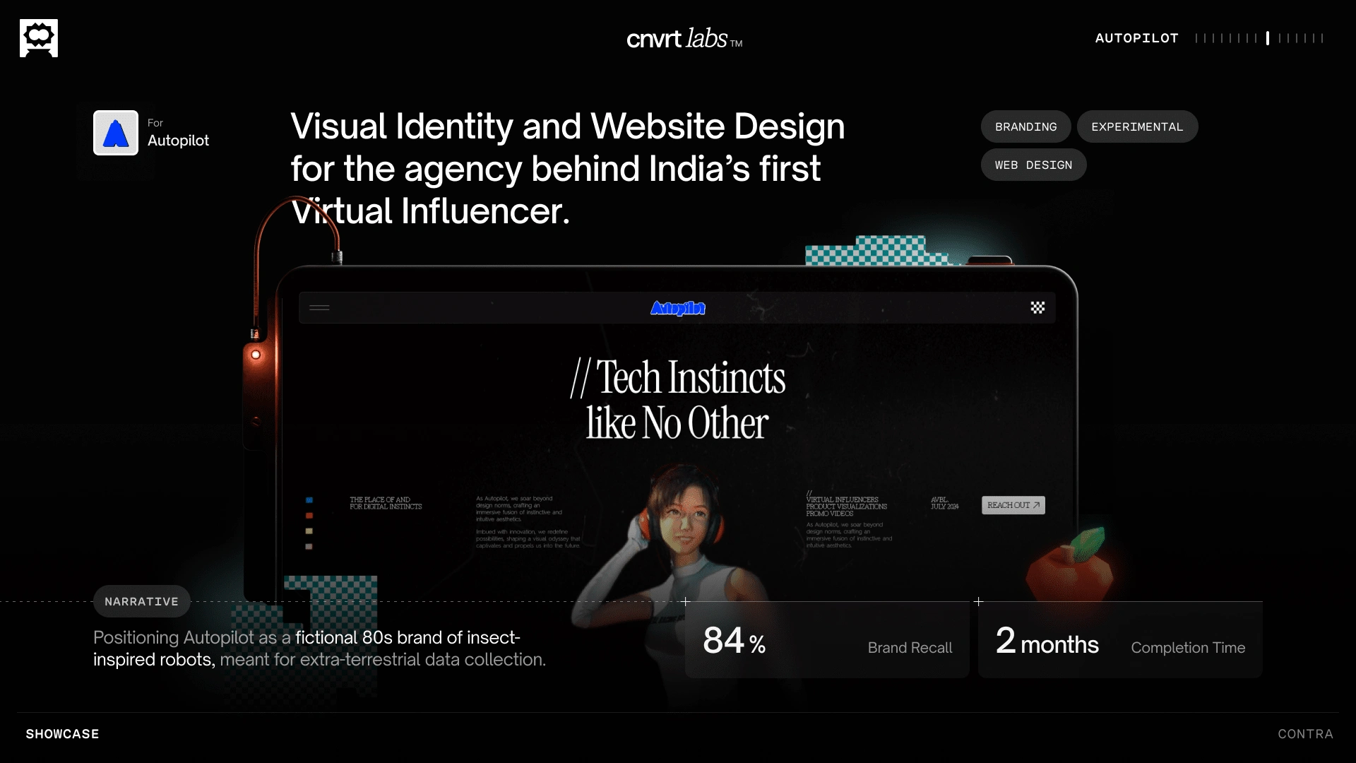 Positioning Autopilot as a fictional 80s brand of insect-inspired robots, meant for outer space. Collection of identities for various verticals.