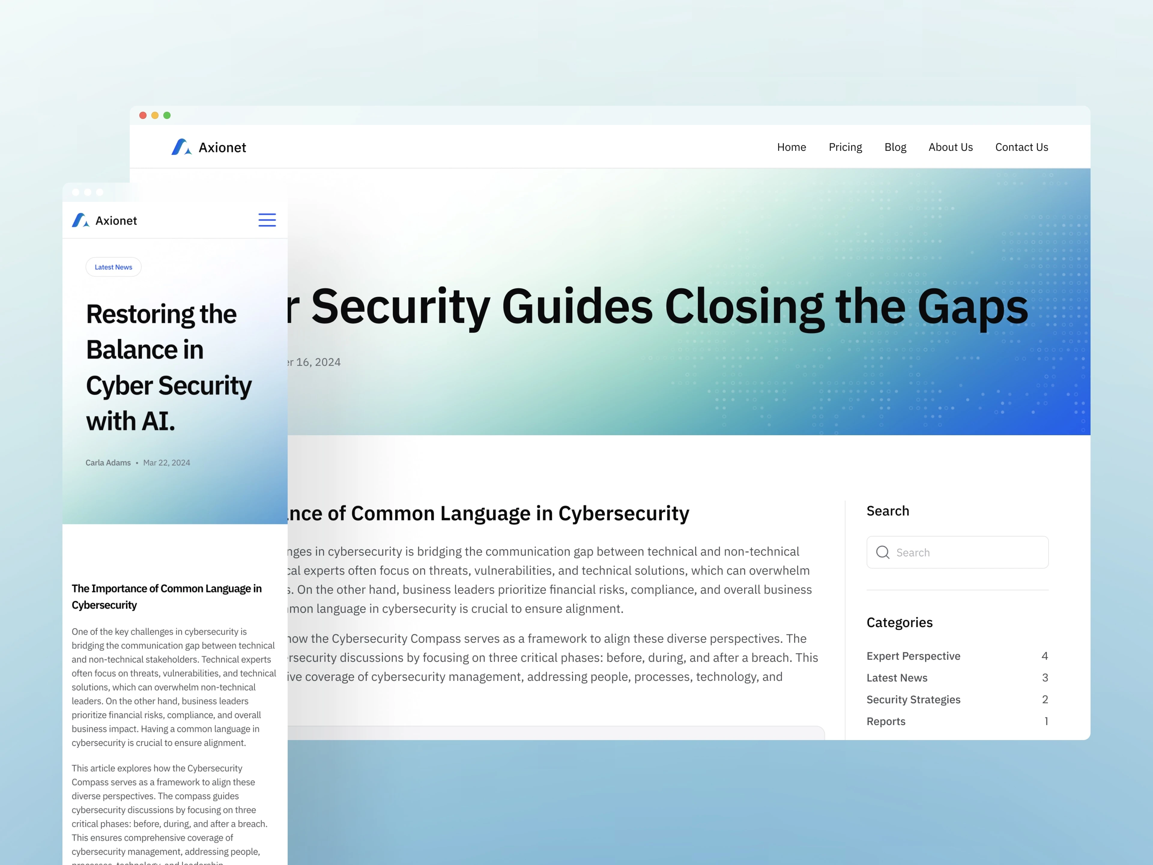 Bottom Line: Axionet empowered cybersecurity startups to launch enterprise-grade websites in 4.5 hours instead of 4-6 months, enabling them to compete for high-value contracts immediately. The template's focus on trust-building and technical credibility helped founders convert prospects 47% more effectively while redirecting development resources toward building better security products.