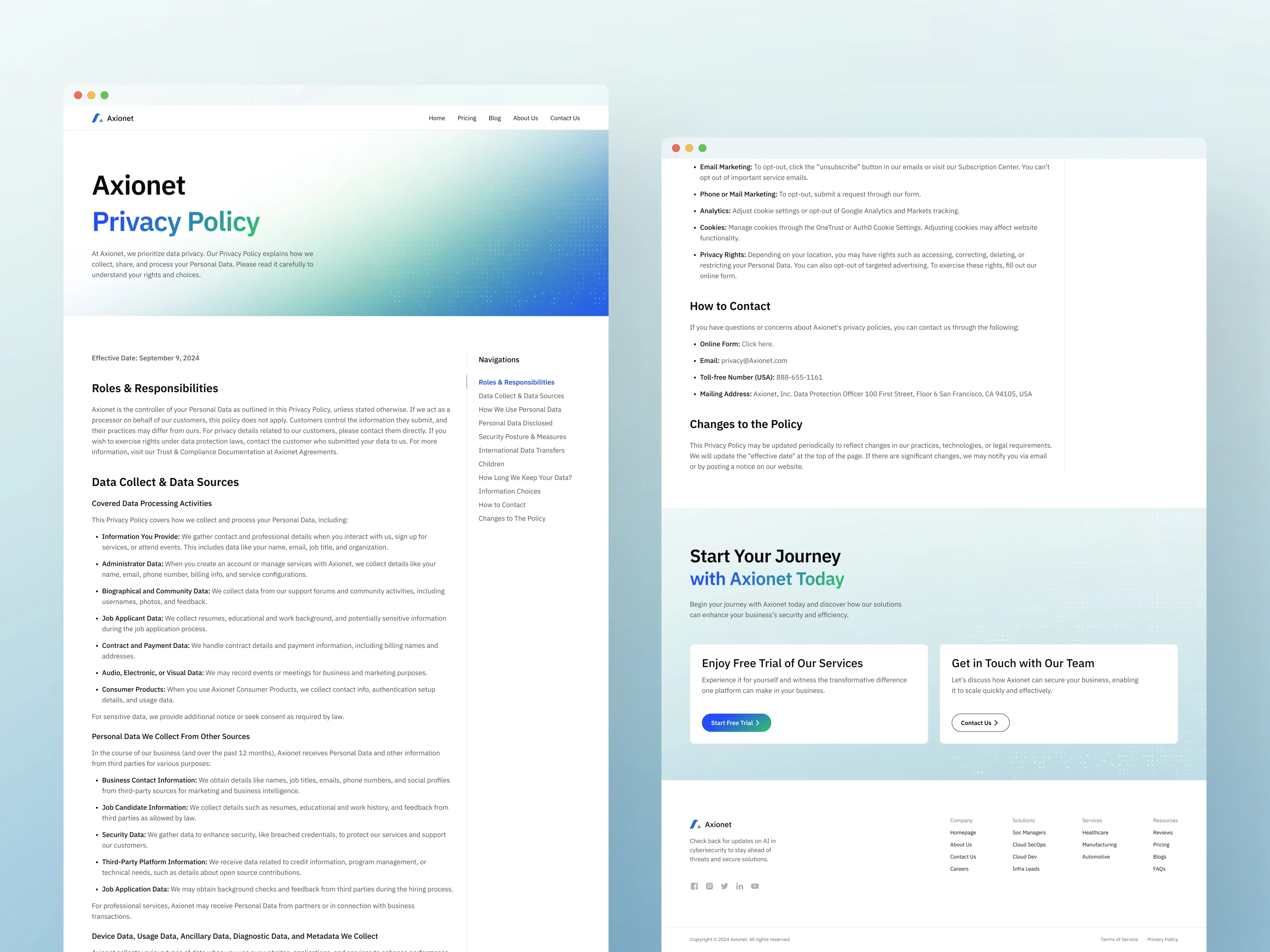 Axionet delivers a trust-focused template ecosystem built specifically for cybersecurity credibility. First, a Comprehensive Page System featuring 11 essential pages, including Home, About, Careers, Pricing, Blog, FAQ, Contact, Privacy Policy, Terms of Service, 404, and Blog Single, covering every touchpoint enterprise clients expect when evaluating security vendors.
