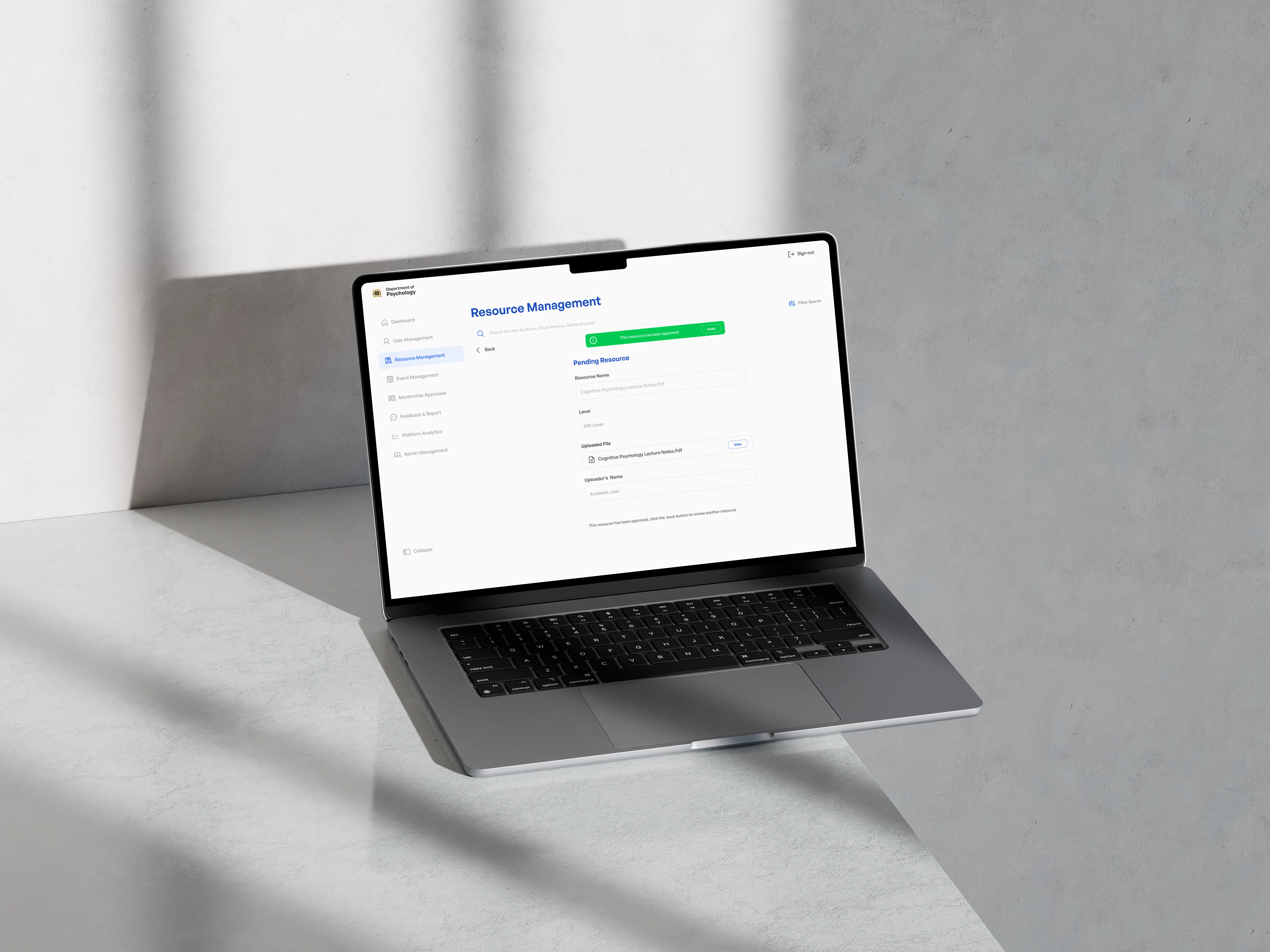 The Resource Management section serves as the control hub for overseeing all educational materials within the platform. From here, administrators can review, approve, or reject uploaded resources such as lecture notes, textbooks, and supplementary files. This ensures that only high-quality, relevant, and verified content becomes available to students. Admins can search, filter, and sort submissions, view detailed metadata, and manage file versions - streamlining the entire process from submission to publication. By centralizing control, Resource Management guarantees consistency, accuracy, and relevance across all shared resources