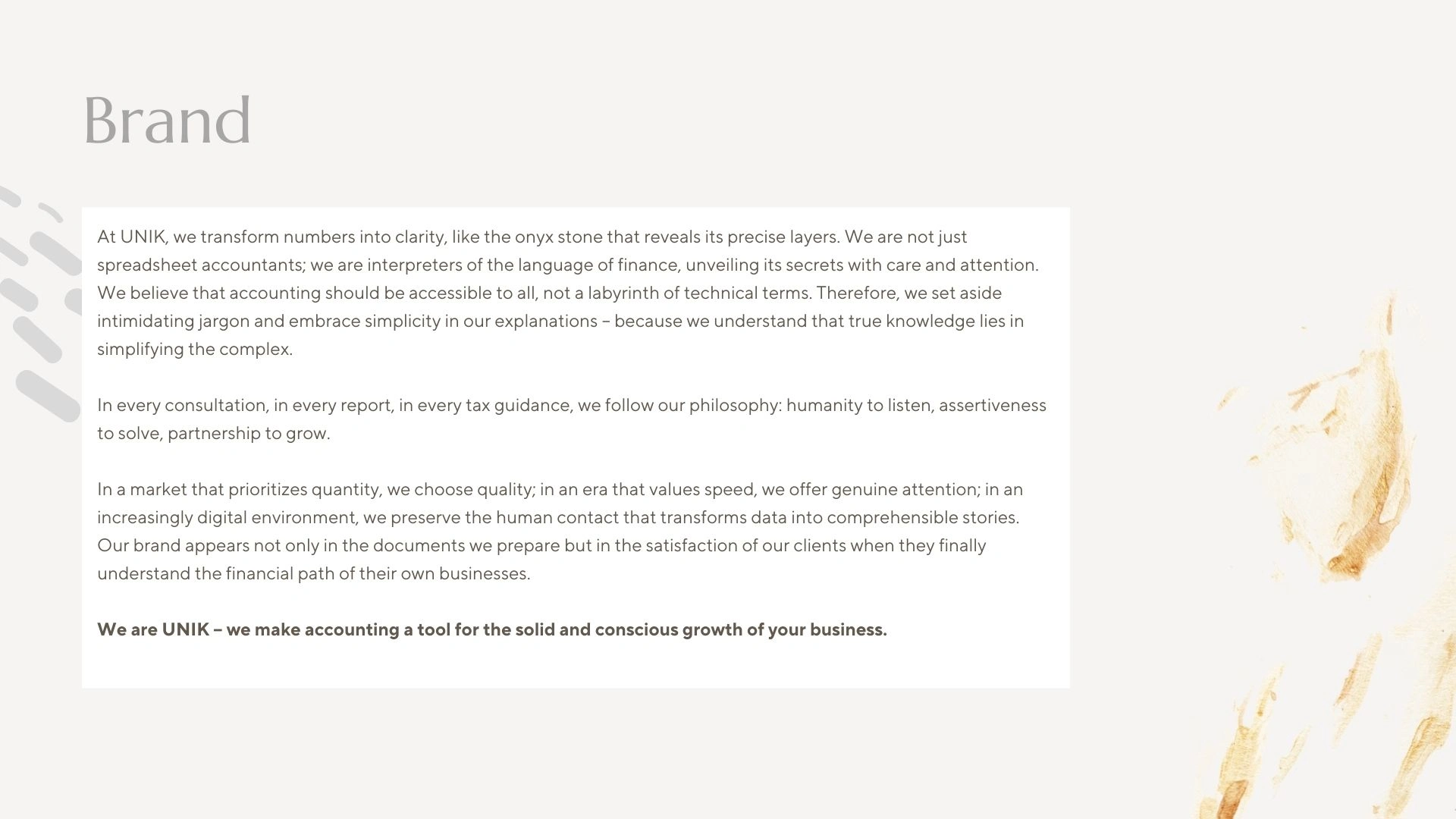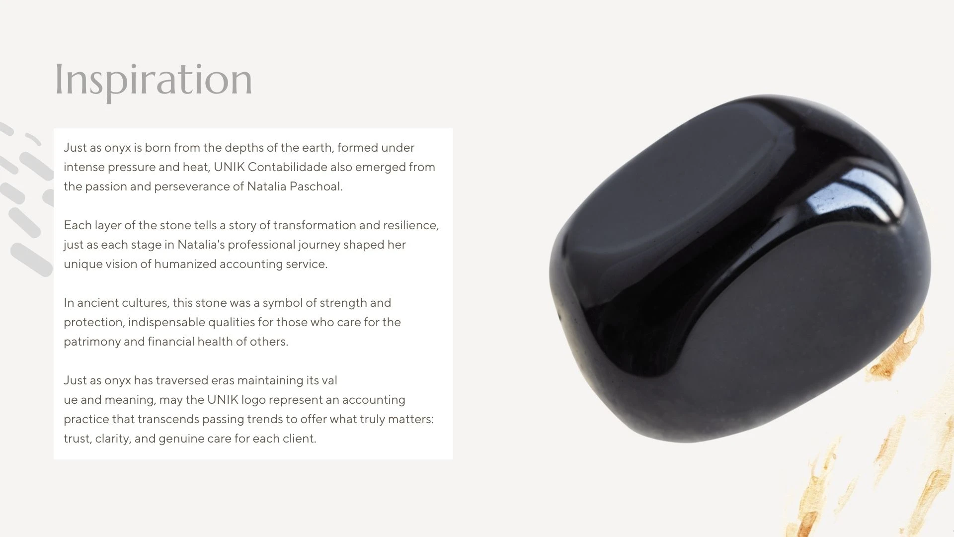 The design process began with deep research into the symbolic meaning of onyx stone, which became the conceptual foundation for the brand. Just as onyx reveals distinct, precise layers when polished, UNIK transforms complex numbers into clear, understandable information.