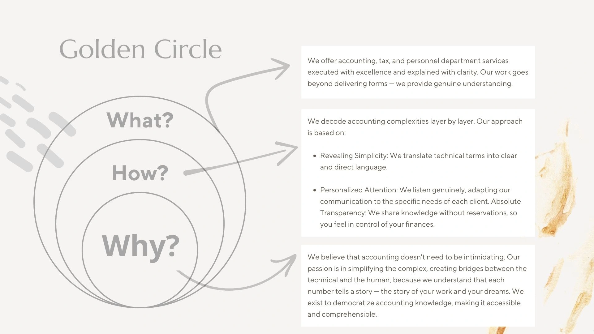 This metaphor guided the development of a visual identity that balances professionalism with approachability, using a minimalist black and white palette accented with subtle gold textures to convey both sophistication and warmth.
