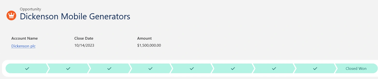 These KPIs update automatically as opportunities move through the pipeline, giving a real-time view of sales health.