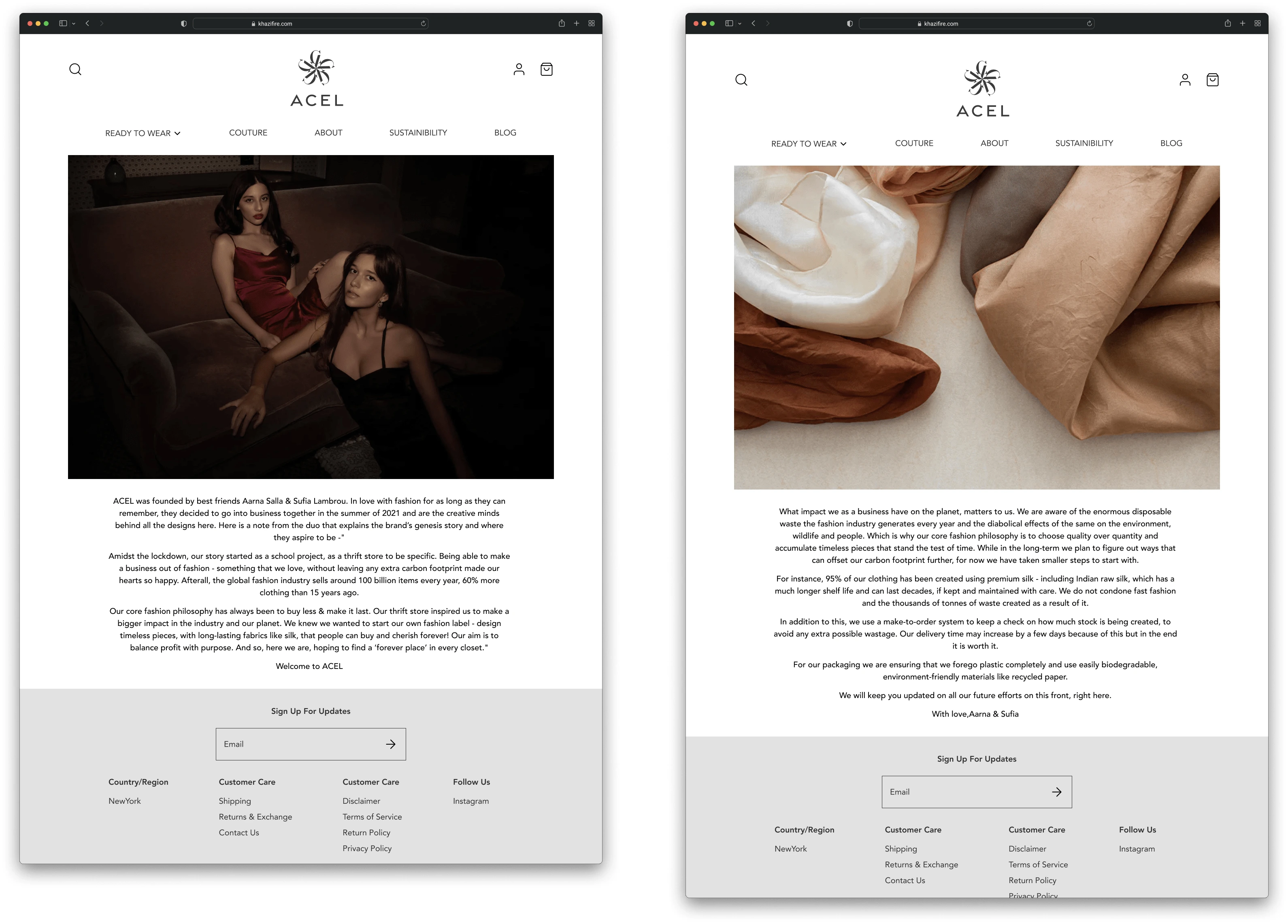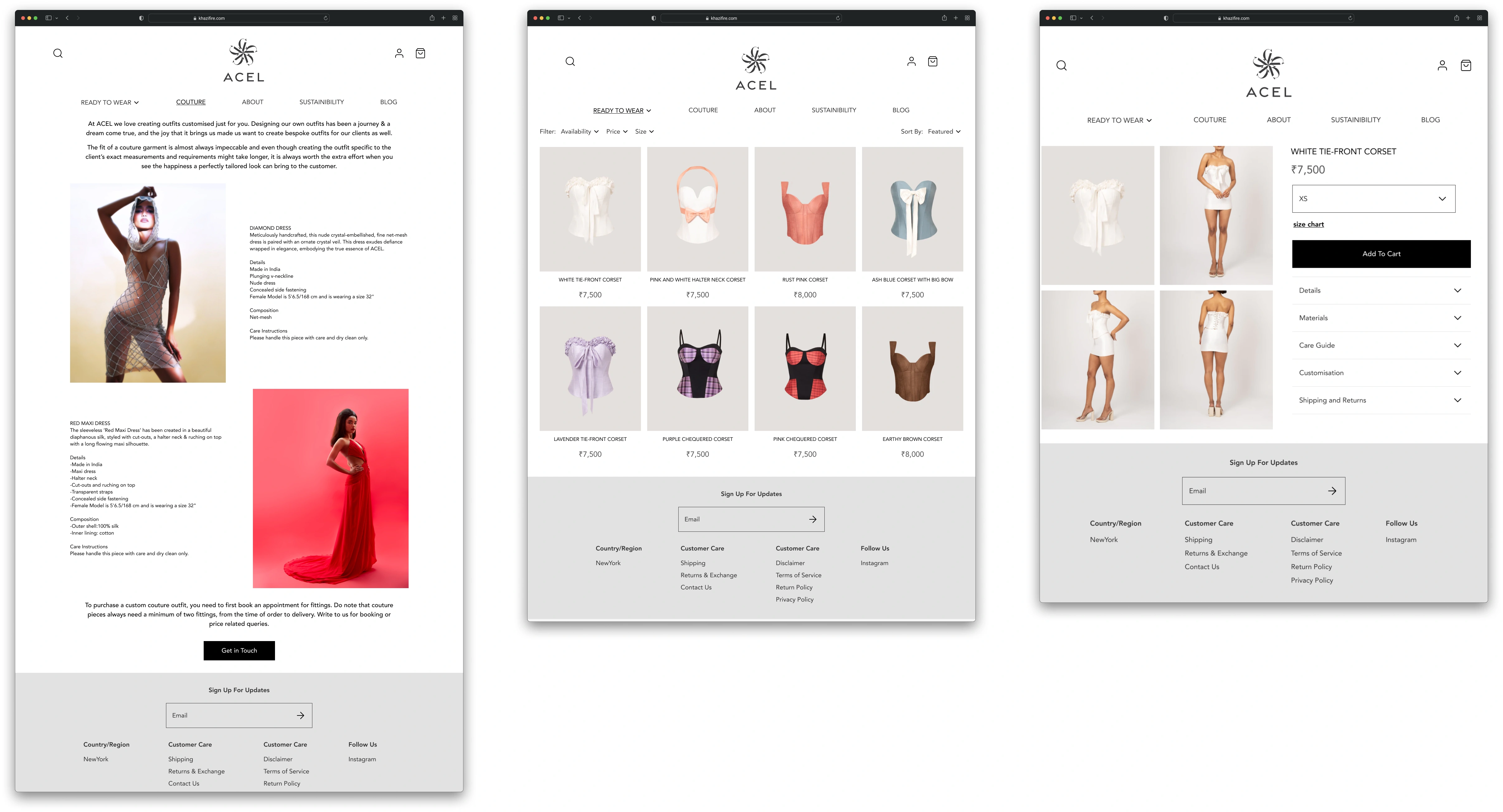 Acel is fashion label which focused on premium, made to order clothing. The website is built and customised on Shopify.