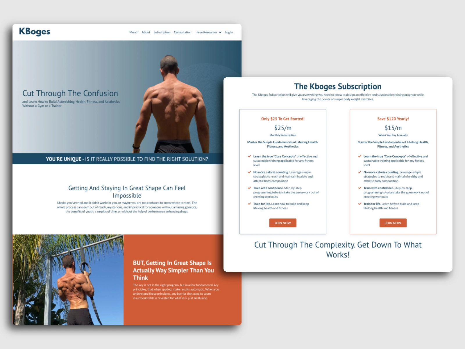 When Kyle first came to me, his website was hosted on Wix and wasn’t converting. The layout was amature, the funnels were unclear, and his message - simple, evidence-based training for real results - wasn’t shining through. His audience needed a streamlined way to understand his approach and take action, without distractions or fluff.