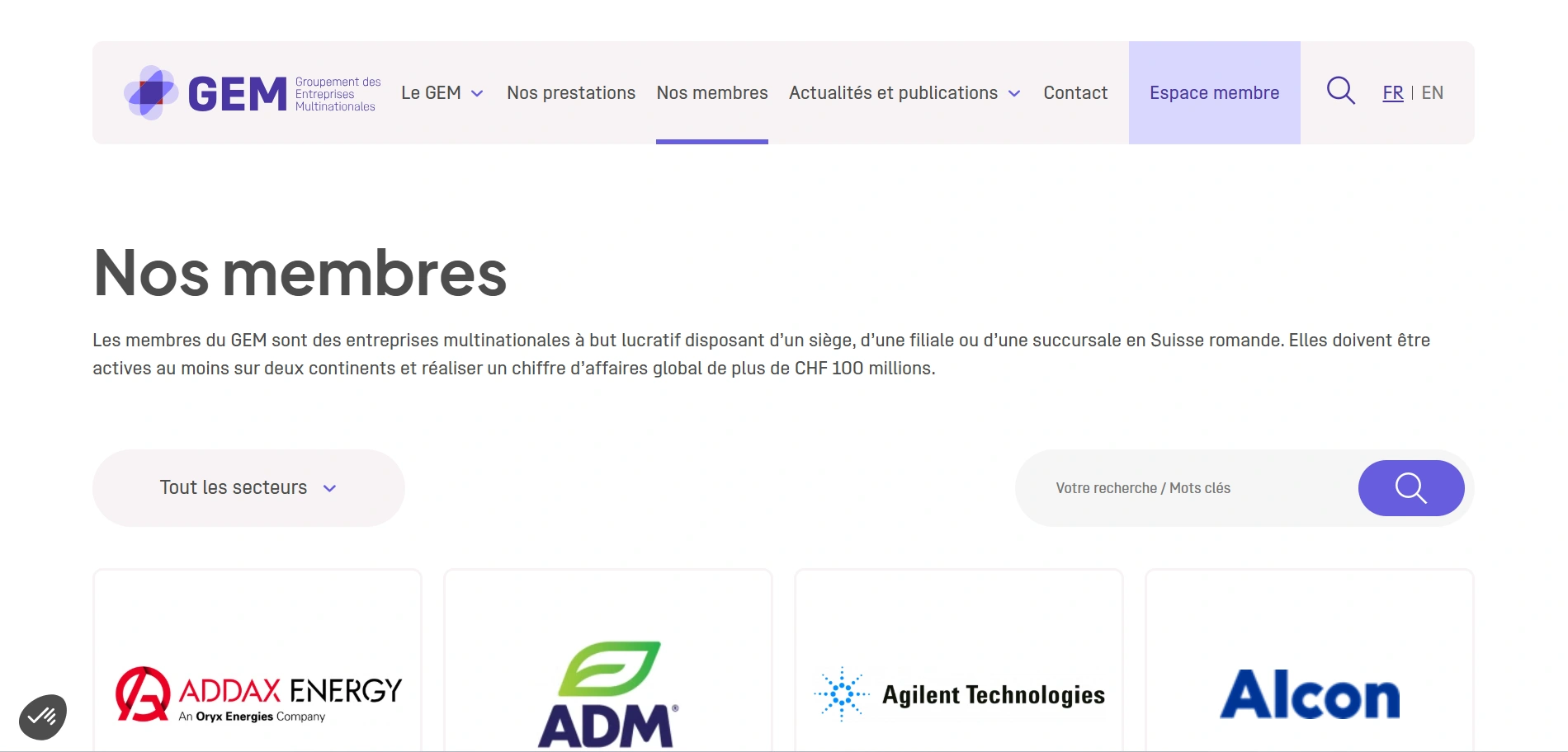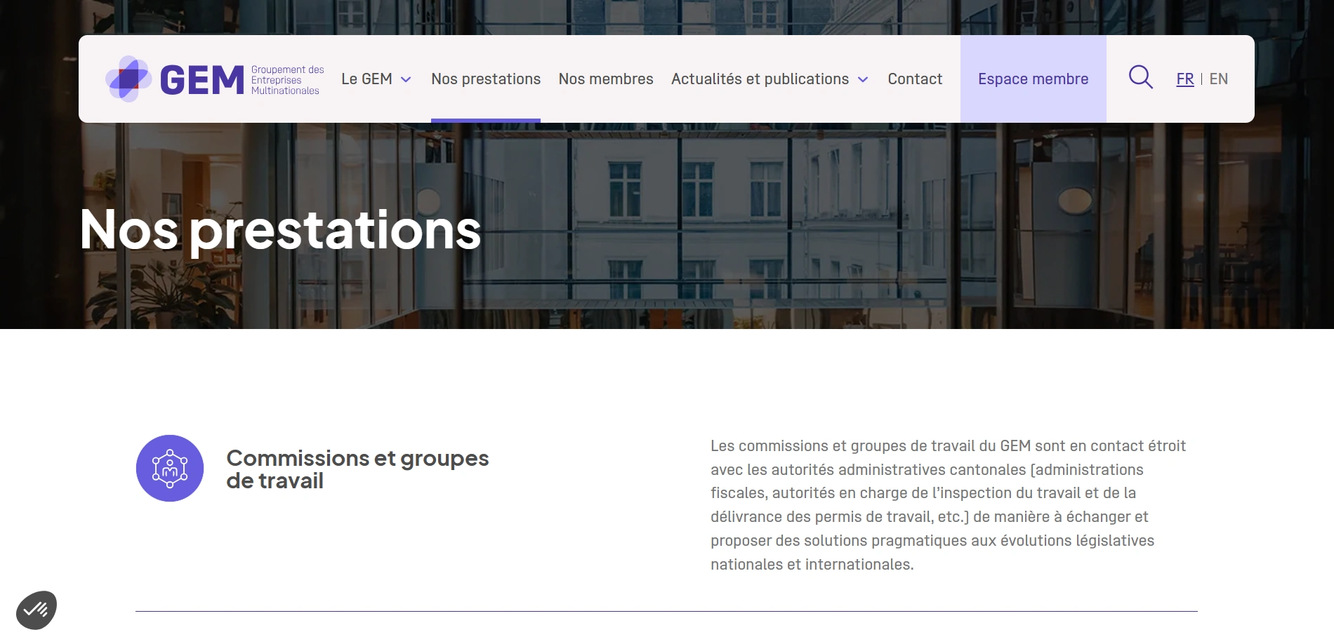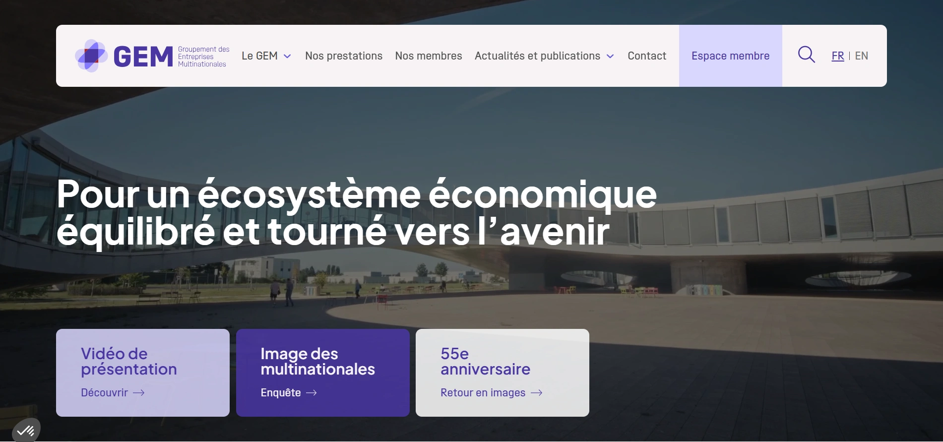 A corporate website created for GEM (Groupement des Entreprises Multinationales) to celebrate its 55th anniversary. The platform features a public section showcasing the organization’s mission, role, and services, and a secure private member area (Intranet) with role-based access. The project focused on delivering a modern, user-friendly, and scalable platform using WordPress Full Site Editing (FSE) — easy to manage, responsive across all devices, and enhanced with an interactive member map featuring smooth filtering and dynamic loading.