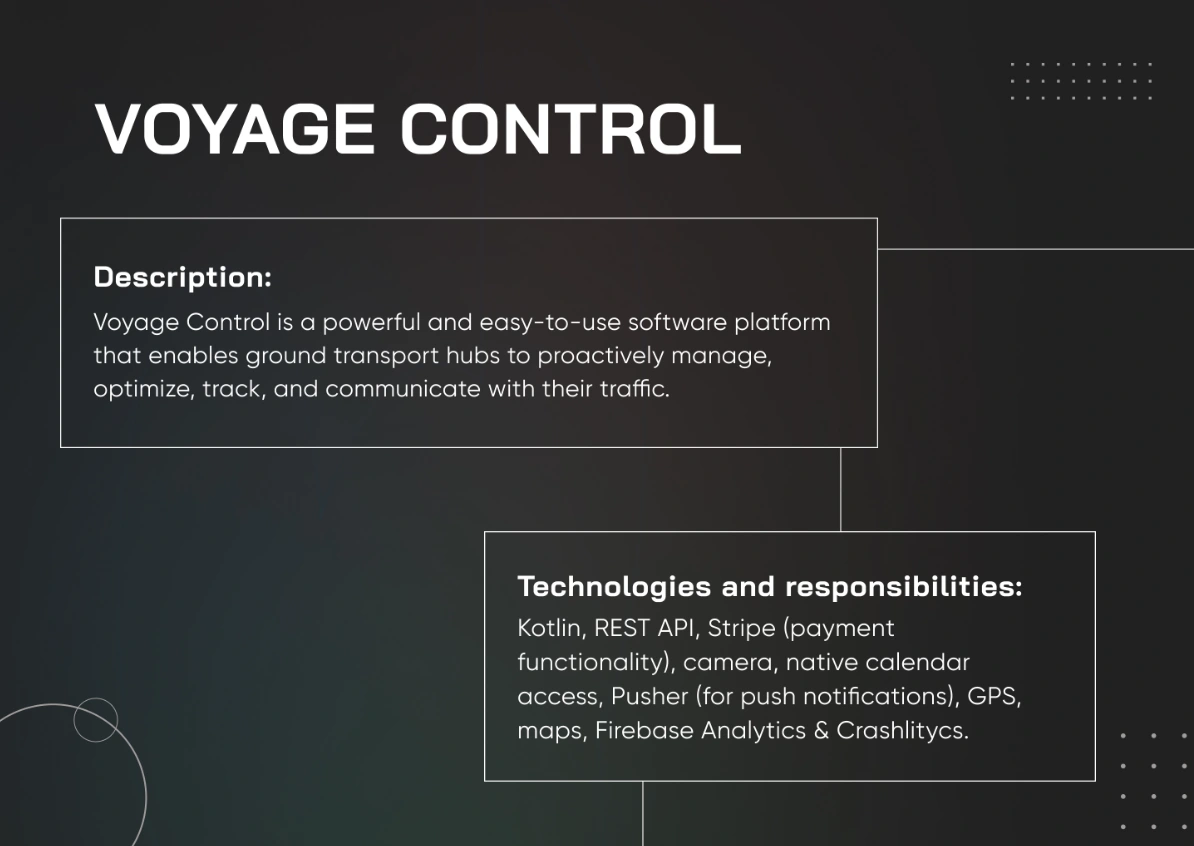 Voyage Control is a powerful and easy-to-use software platform that enables ground transport hubs to proactively manage, optimize, track, and communicate with their traffic.