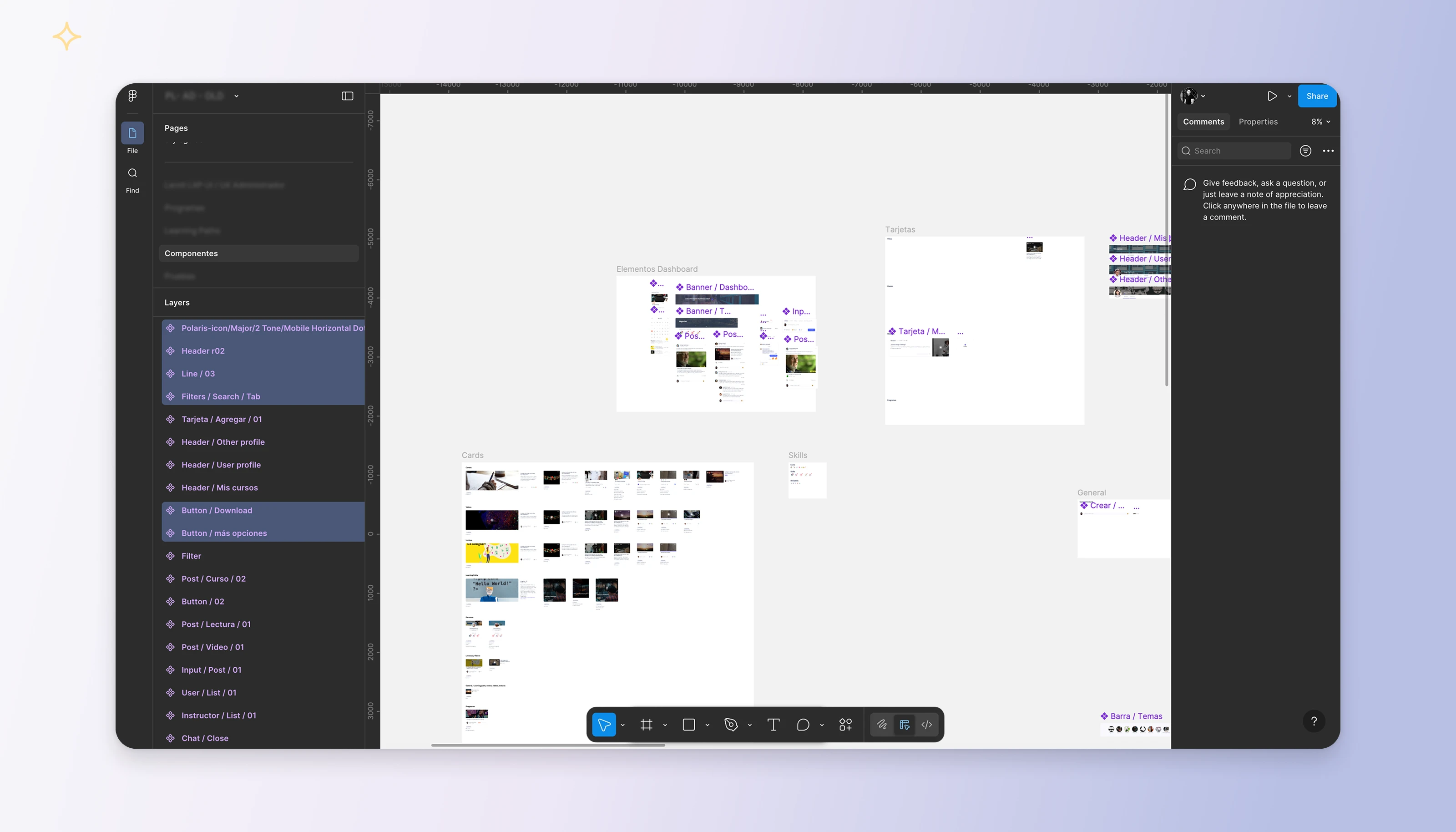 I focused on organizing Figma files, defining clear hierarchies, and introducing consistent naming conventions for components and patterns. Ad-hoc design decisions were replaced with reusable foundations and shared standards.