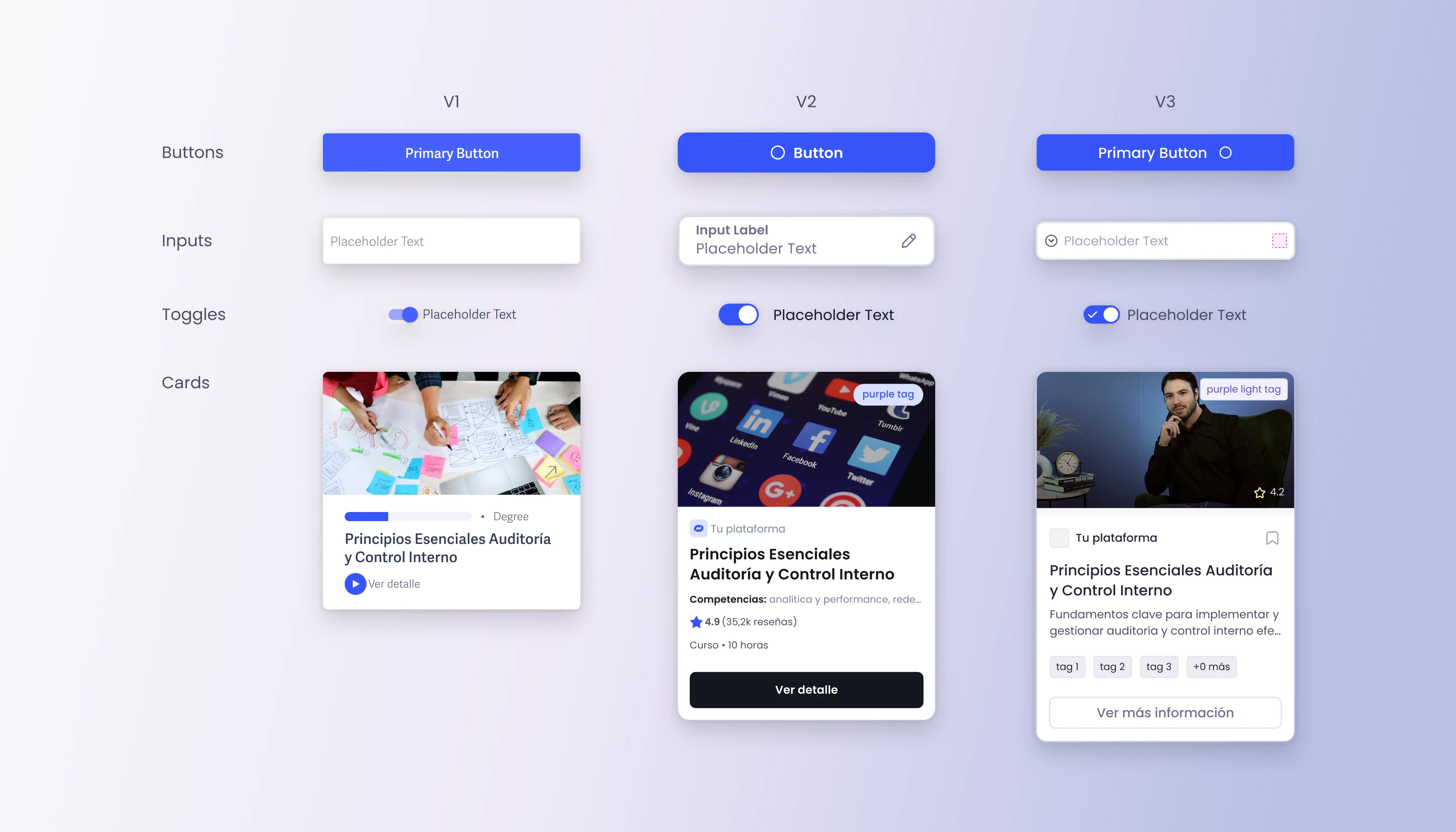 Illustrative comparison of the same abstract UI components evolving independently across versions, highlighting how the absence of a shared design system led to visual and behavioral inconsistencies at scale.