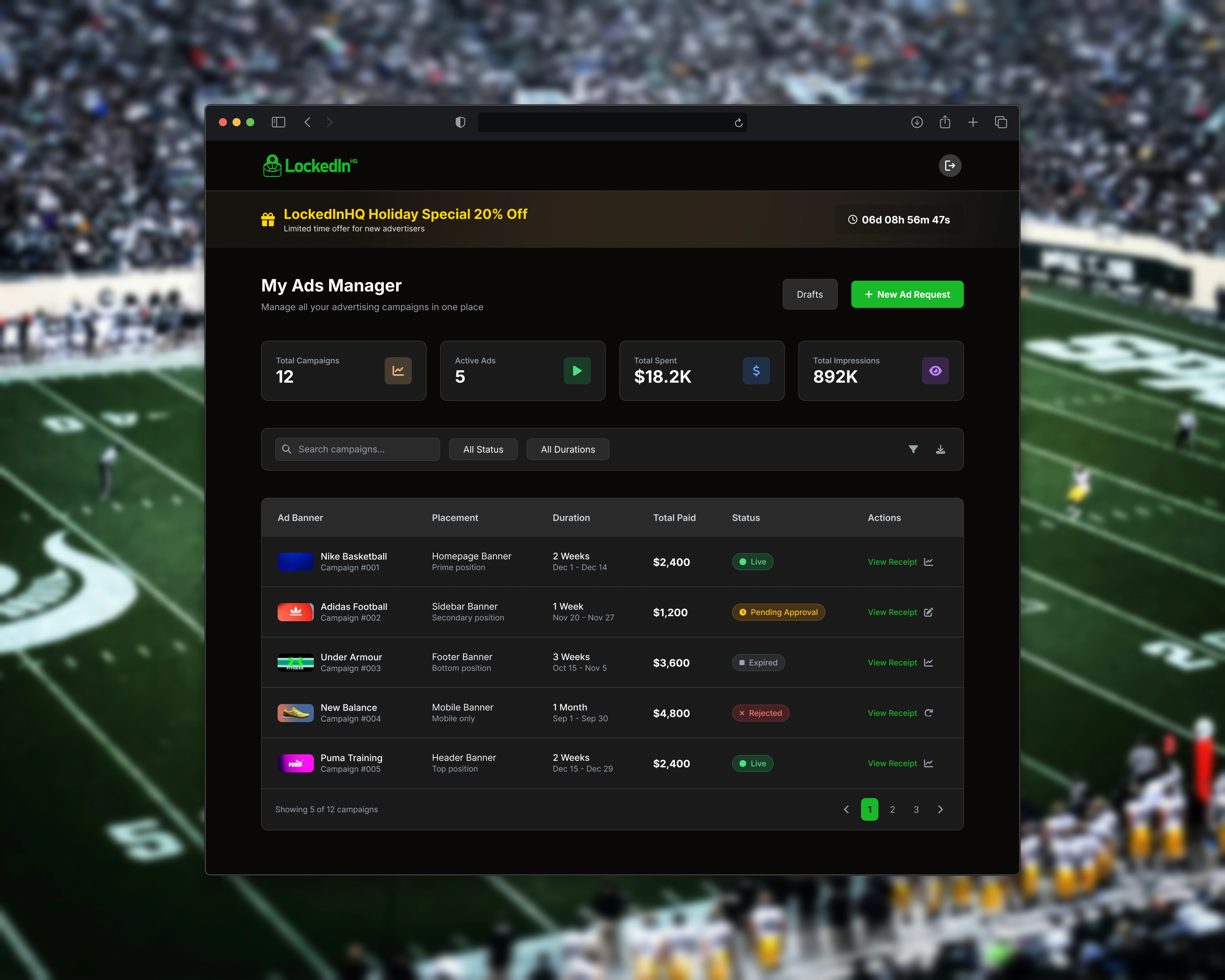 Jemirae engineered the Brand Ads Engine for LockedInHQ, creating a scalable self-service marketing portal and internal Control Tower for the $1B athlete economy