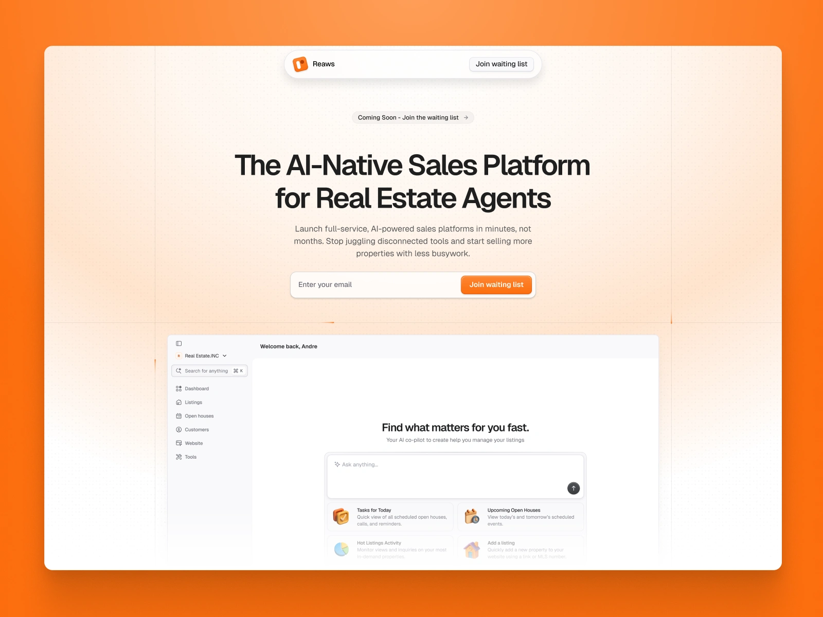 Reaws is building a platform to simplify real estate workflows. They needed a landing page to introduce their product vision, build credibility, and drive early sign-ups for their waitlist. My challenge was to translate their innovative idea into a clear, modern, and trustworthy digital presence that would attract potential users and partners.